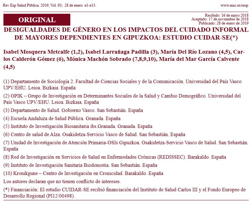 Existen desigualdades de género en la provisión de cuidados informales a mayores dependientes en Gipuzkoa, mostrando las mujeres un mayor impacto en su salud y CVRS que los hombres. Considerando la organización del cuidado en esta provincia, será necesario el diseño de acciones de mejora más adecuadas a las necesidades de las personas cuidadoras.