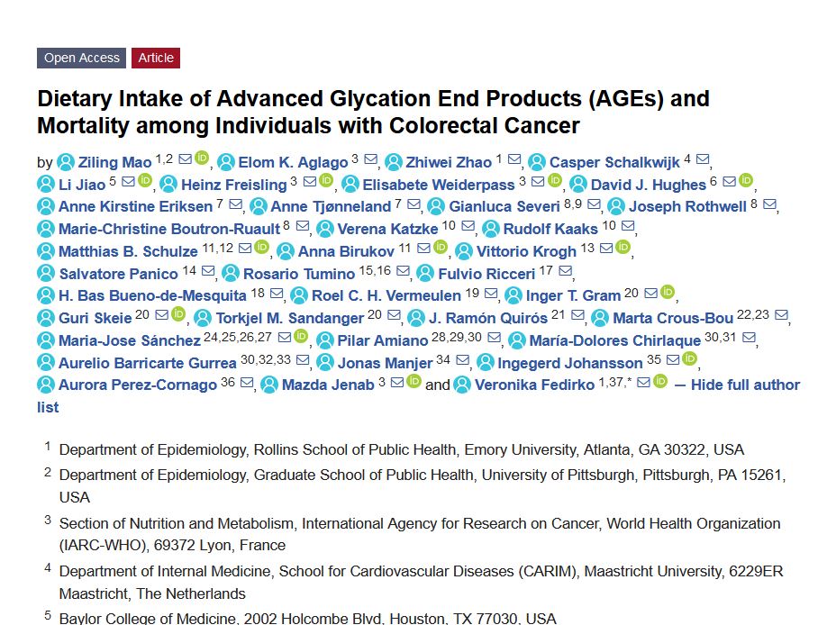 Advanced glycation end-products (AGEs) may promote oxidative stress and inflammation and have been linked to multiple chronic diseases, including cancer. However, the association of AGEs with mortality after colorectal cancer (CRC) diagnosis has not been previously investigated. Multivariable Cox proportional hazards models were used to calculate hazard ratios and corresponding 95% confidence intervals for associations between dietary intake of AGEs with CRC-specific and all-cause mortality among 5801 participant cases diagnosed with CRC in the European Prospective Investigation into Cancer and Nutrition study between 1993 and 2013. Dietary intakes of AGEs were estimated using country-specific dietary questionnaires, linked to an AGE database, that accounted for food preparation and processing. During a median of 58 months of follow-up, 2421 cases died (1841 from CRC). Individually or combined, dietary intakes of AGEs were not associated with all-cause and CRC-specific mortality among cases. However, there was a suggestion for a positive association between AGEs and all-cause or CRC-specific mortality among CRC cases without type II diabetes (all-cause, Pinteraction = 0.05) and CRC cases with the longest follow-up between recruitment and cancer diagnosis (CRC-specific, Pinteraction = 0.003; all-cause, Pinteraction = 0.01). Our study suggests that pre-diagnostic dietary intakes of AGEs were not associated with CRC-specific or all-cause mortality among CRC patients. Further investigations using biomarkers of AGEs and stratifying by sex, diabetes status, and timing of exposure to AGEs are warranted.