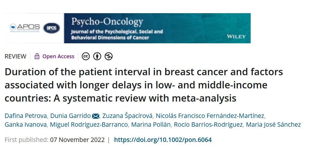 Breast cancer survival is lower in low- and middle-income countries (LMICs) partially due to many women being diagnosed with late-stage disease. The patient interval refers to the time elapsed between the detection of symptoms and the first consultation with a healthcare provider and is considered one of the core indicators for early diagnosis and treatment. The goal of the current research was to conduct a meta-analysis of the duration of the patient interval in LMICs and investigate the socio-demographic and socio-cultural factors related to longer delays in presentation.