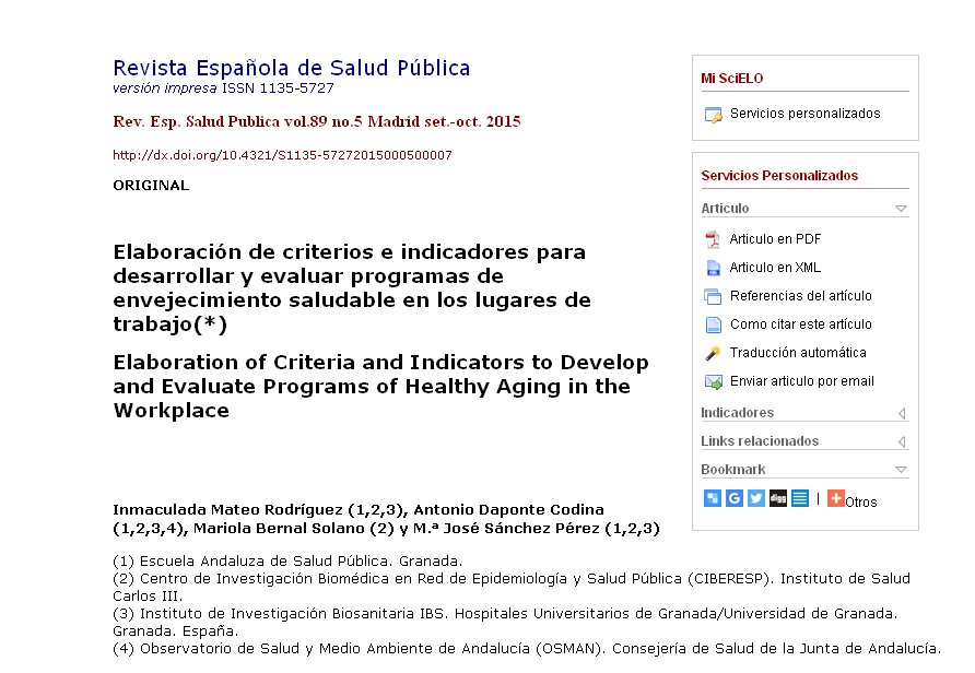 Conclusiones: La lista de verificación ayuda a sistematizar la metodología global de implantación de intervenciones que puede ser utilizada por responsables de los programas para promover el envejecimiento activo y saludable en los centros de trabajo.
