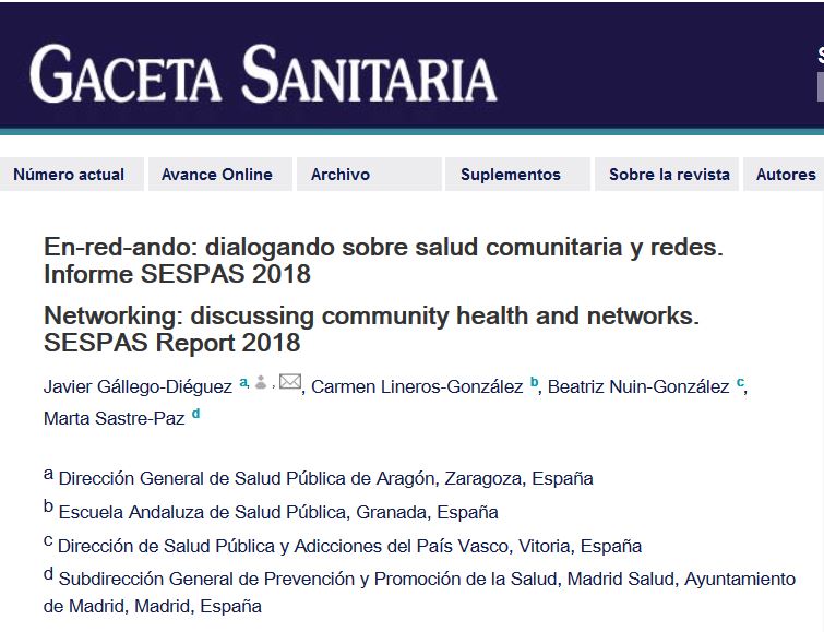 Cuatro voces repartidas por España dialogan sobre salud comunitaria y redes, entendiendo que estas son sistemas formados por personas interconectadas, con un interés común, que dan apoyo y sostén. Las redes requieren un espacio común y tiempo, para generar un clima de confianza y respeto que permita un trabajo horizontal. Así se consensua que son estructuras adecuadas para la promoción de la salud, facilitando el intercambio de conocimiento, la colaboración y la innovación a través de la participación de quienes las conforman. La evaluación del trabajo de las redes es importante; se realiza analizando su autonomía, liderazgo, calidad de vínculos, formación, proyección de la red hacia el exterior, capacidad de integrar colectivos y sinergia.