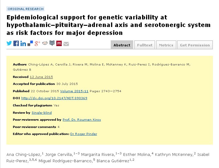 Conclusion: Although limited, perhaps due to insufficient sample size power, our results seem to support the notion that the hypothalamic–pituitary–adrenal and serotonergic systems are likely to be involved in the genetic susceptibility for MDD. Future studies, including larger samples, should be addressed for further validation and replication of the present findings.