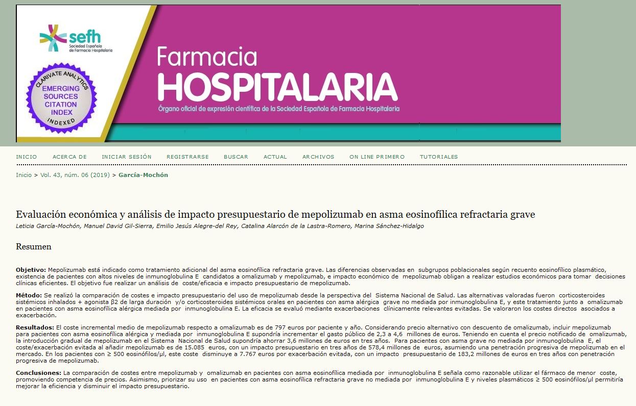 Conclusiones: La comparación de costes entre mepolizumab y omalizumab en pacientes con asma eosinofílica mediada por inmunoglobulina E señala como razonable utilizar el fármaco de menor coste, promoviendo competencia de precios. Asimismo, priorizar su uso en pacientes con asma eosinofílica refractaria grave no mediada por inmunoglobulina E y niveles plasmáticos ≥ 500 eosinófilos/μl permitiría mejorar la eficiencia y disminuir el impacto presupuestario.