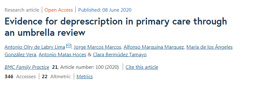 There is a high prevalence of potentially inappropriate prescriptions in primary care. This is associated with more frequent adverse events, lower quality of life and more frequent visits to hospital accident & emergency departments. The aim of the present study is to summarise available evidence on the effectiveness of deprescription interventions in primary care, and to describe the barriers and enablers of the process from the point of view of patients and healthcare professionals.