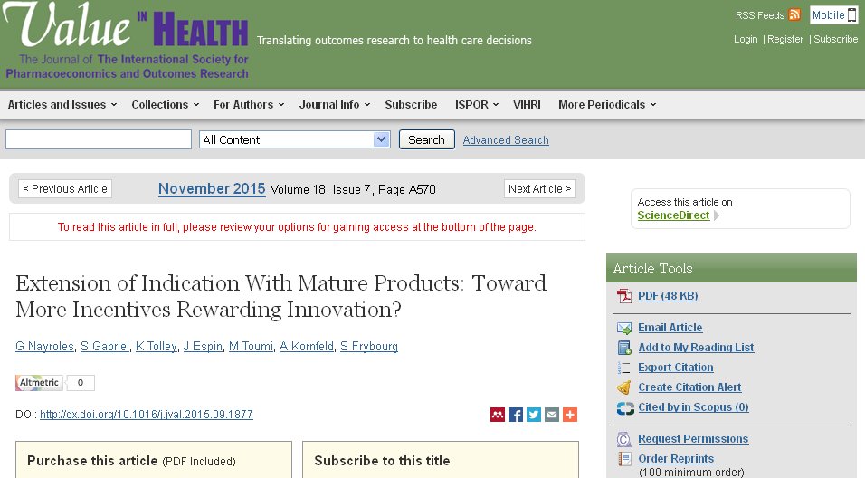Mature products (MPs – marketed for 10 years or more) are widely used off label (from 15 to 35% according to studies) despite little evidence on benefit risk ratio. This exposes patients to risks or lack of efficacy and healthcare providers to liability. However manufacturers are rarely investing in R&D development for MPs. Indeed MPs face price cuts in Europe, whether due to generic competition, price negotiations or inclusion in reference price groups. Moreover new indications, even if demonstrating a higher value of the drug, often lead to price reductions in Europe due to a combination of price/volume agreements and external reference pricing.