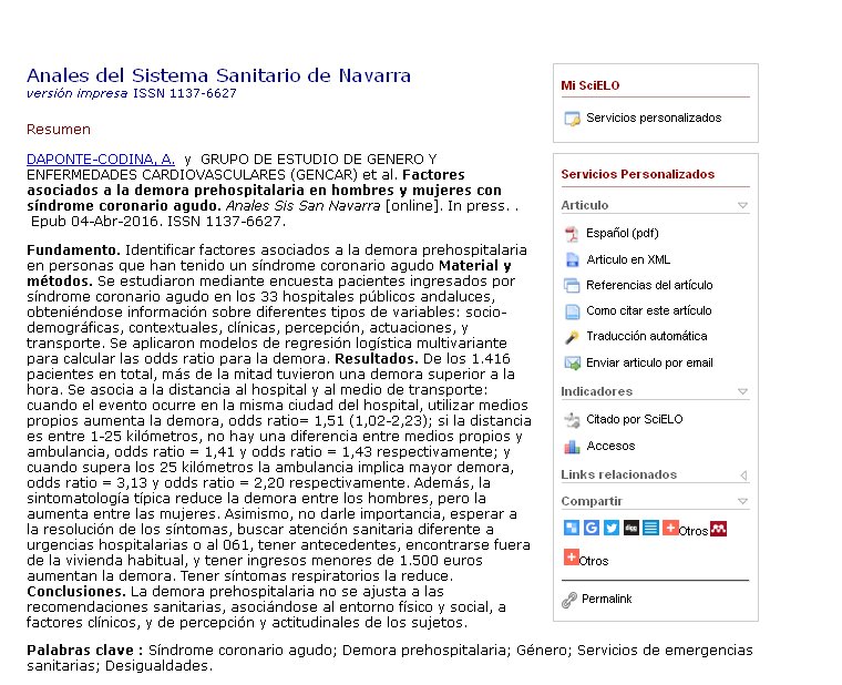 Fundamento. Identificar factores asociados a la demora prehospitalaria en personas que han tenido un síndrome coronario agudo Material y métodos. Se estudiaron mediante encuesta pacientes ingresados por síndrome coronario agudo en los 33 hospitales públicos andaluces, obteniéndose información sobre diferentes tipos de variables: socio-demográficas, contextuales, clínicas, percepción, actuaciones, y transporte. Se aplicaron modelos de regresión logística multivariante para calcular las odds ratio para la demora. Resultados. De los 1.416 pacientes en total, más de la mitad tuvieron una demora superior a la hora. Se asocia a la distancia al hospital y al medio de transporte: cuando el evento ocurre en la misma ciudad del hospital, utilizar medios propios aumenta la demora, odds ratio= 1,51 (1,02-2,23); si la distancia es entre 1-25 kilómetros, no hay una diferencia entre medios propios y ambulancia, odds ratio = 1,41 y odds ratio = 1,43 respectivamente; y cuando supera los 25 kilómetros la ambulancia implica mayor demora, odds ratio = 3,13 y odds ratio = 2,20 respectivamente. Además, la sintomatología típica reduce la demora entre los hombres, pero la aumenta entre las mujeres. Asimismo, no darle importancia, esperar a la resolución de los síntomas, buscar atención sanitaria diferente a urgencias hospitalarias o al 061, tener antecedentes, encontrarse fuera de la vivienda habitual, y tener ingresos menores de 1.500 euros aumentan la demora. Tener síntomas respiratorios la reduce. Conclusiones. La demora prehospitalaria no se ajusta a las recomendaciones sanitarias, asociándose al entorno físico y social, a factores clínicos, y de percepción y actitudinales de los sujetos.