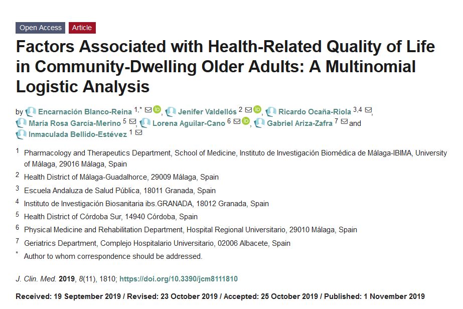 The main aim of this study was to determine the association of various clinical, functional and pharmacological factors with the physical (PCS) and mental (MCS) summary components of the health-related quality of life (HRQoL) of community-dwelling older adults. Design: Cross-sectional study. Patients and setting: Sample of 573 persons aged over 65 years, recruited at 12 primary healthcare centres in Málaga, Spain. Sociodemographic, clinical, functional, and comprehensive drug therapy data were collected. The main outcome was HRQoL assessed on the basis of the SF-12 questionnaire. A multinomial logistic regression model was constructed to study the relationship between independent variables and the HRQoL variable, divided into intervals. The average self-perceived HRQoL score was 43.2 (± 11.02) for the PCS and 48.5 (± 11.04) for the MCS. The factors associated with a poorer PCS were dependence for the instrumental activities of daily living (IADL), higher body mass index (BMI), number of medications, and presence of osteoarticular pathology. Female gender and the presence of a psychopathological disorder were associated with worse scores for the MCS. The condition that was most strongly associated with a poorer HRQoL (in both components, PCS and MCS) was that of frailty (odds ratio (OR) = 37.42, 95% confidence interval (CI) = 8.96–156.22, and OR = 20.95, 95% CI = 7.55–58.17, respectively). It is important to identify the determinant factors of a diminished HRQoL, especially if they are preventable or modifiable.