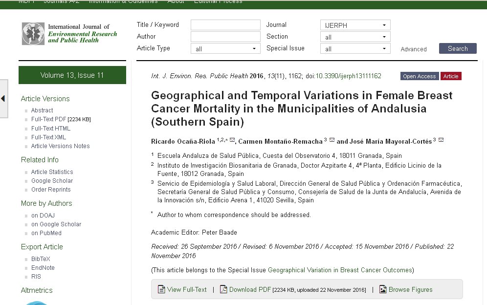 The last published figures have shown geographical variations in mortality with respect to female breast cancer in European countries. However, national health policies need a dynamic image of the geographical variations within the country. The aim of this paper was to describe the spatial distribution of age-specific mortality rates from female breast cancer in the municipalities of Andalusia (southern Spain) and to analyze its evolution over time from 1981 to 2012. An ecological study was devised. Two spatio-temporal hierarchical Bayesian models were estimated. One of these was used to estimate the age-specific mortality rate for each municipality, together with its time trends, and the other was used to estimate the age-specific rate ratio compared with Spain as a whole. The results showed that 98% of the municipalities exhibited a decreasing or a flat mortality trend for all the age groups. In 2012, the geographical variability of the age-specific mortality rates was small, especially for population groups below 65. In addition, more than 96.6% of the municipalities showed an age-specific mortality rate similar to the corresponding rate for Spain, and there were no identified significant clusters. This information will contribute towards a reflection on the past, present and future of breast cancer outcomes in Andalusia