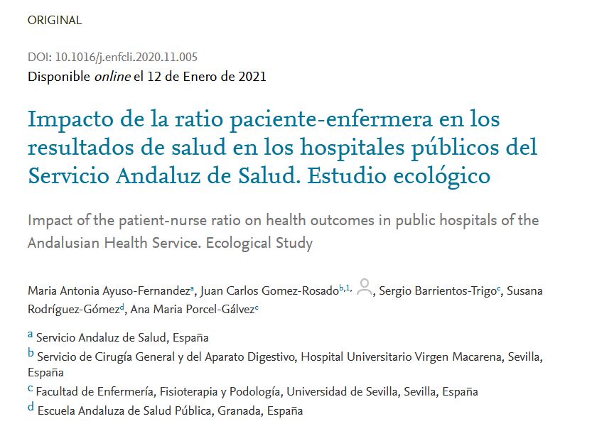 Analizar la ratio paciente-enfermera y su asociación con los resultados en salud en hospitales públicos del Servicio Andaluz de Salud (SAS).