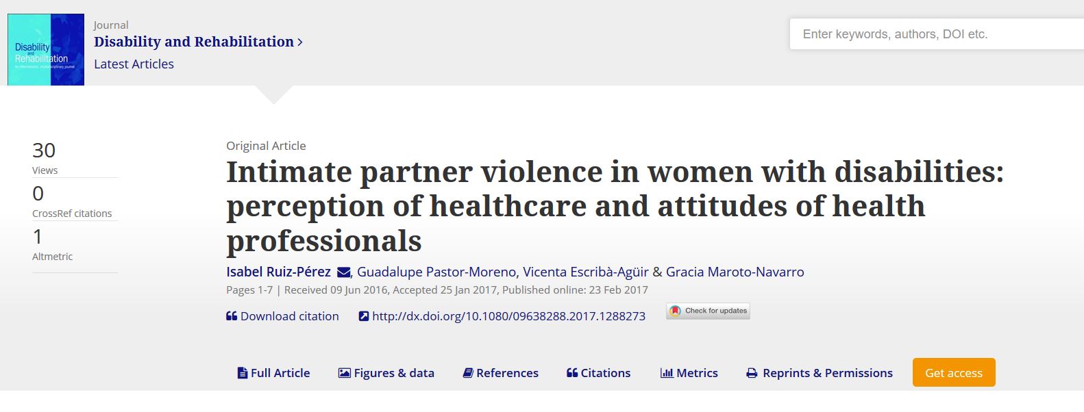 Purpose: Intimate partner violence (IPV) is a major social problem and public health issue, but we still have a relatively small amount of data about partner violence in women with disabilities. The main objective of this study was to understand the experiences of women with disabilities who are or have been abused by their partners and to explore the knowledge, views and training requirements of primary care professionals.