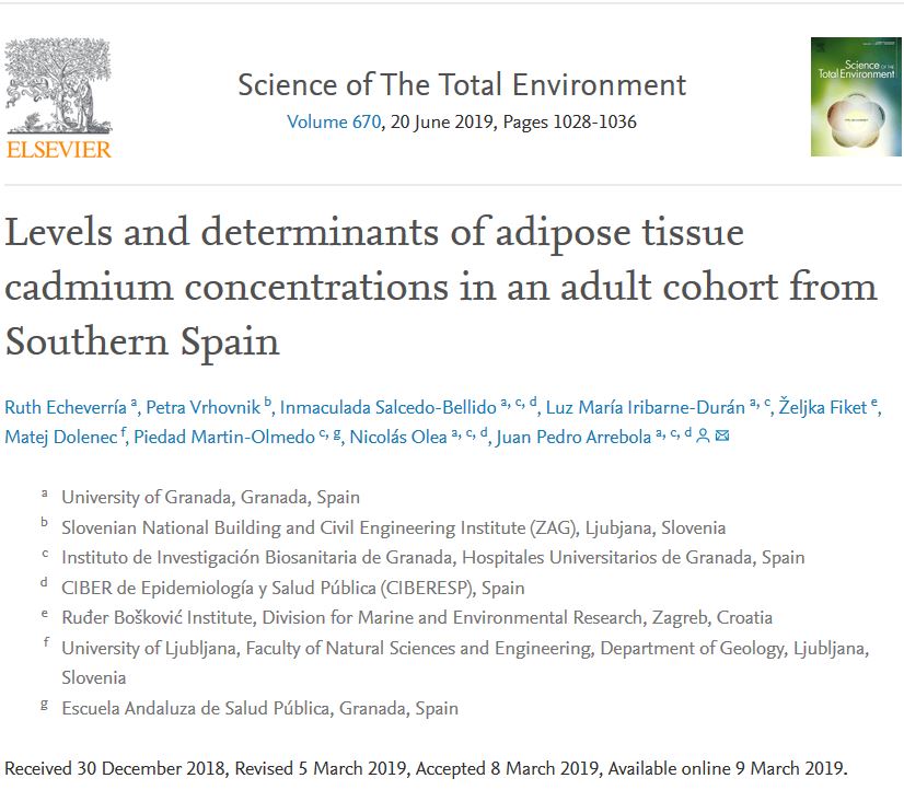 The study population is a subsample of GraMo cohort. Adipose tissue samples were intraoperatively collected from 226 adult volunteers recruited in two public hospitals from Granada, Spain. Cd concentrations in adipose tissue were analyzed by High-Resolution Inductively Coupled Plasma Mass Spectrometry (HR-ICP-MS). Data on socio-demographic characteristics, lifestyle, diet and health status were collected by face-to-face interviews. Predictors of Cd concentrations were assessed by multivariable linear regression with a stepwise variable selection.