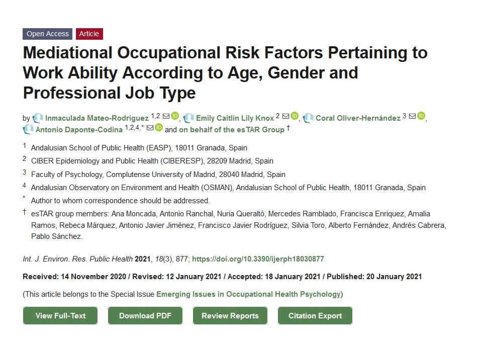 The predictive value of work ability for several health and occupational outcomes is well known. Maintaining the ability to work of all employees has become an important topic in research although some evidence suggests that some groups of workers need greater attention than others. Healthcare workers (x¯ = 54.46 ± 5.64 years) attending routine occupational health checkups completed their work ability, occupational risk and sociodemographic measures. An analysis examined whether work ability differed according to gender, age and professional category. Mediation of these relationships by occupational risk variables, such as work–family conflict, was examined. Females and older adults had worse work ability than their counterparts. Professional group was not independently associated. Gender-related differences were mediated by current and historic ergonomic risk, psychosocial risk and work–family conflict. Age-related differences were mediated by violence/discrimination at work. All job risk variables, apart from current ergonomic risk, mediated associations between professional category and work ability. The present study identified the importance of risk variables for the work ability of health workers according to gender, age and professional job type. Perceptions of work–family conflict and violence–discrimination seem particularly important and should be considered when targeting improvements in work ability.
