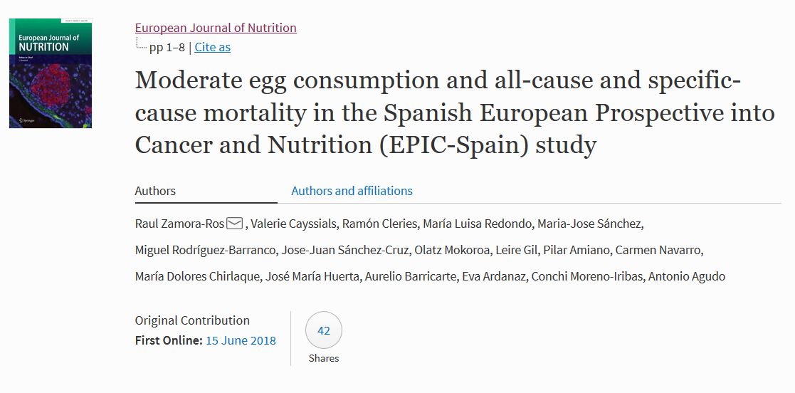 This study shows no association between moderate egg consumption, up to 1 egg per day, and main causes of mortality in a large free-living Mediterranean population.