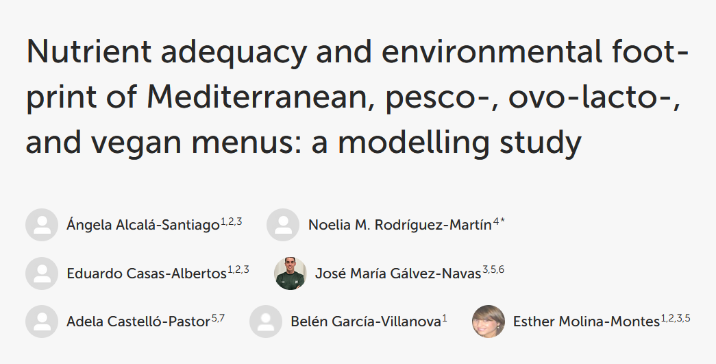 Objective: To compare the nutritional adequacy and environmental footprints of four 7-day menu models (~ 2,000 kcal/day) Mediterranean (omnivorous) diet, two vegetarian-like diets, and one vegan.