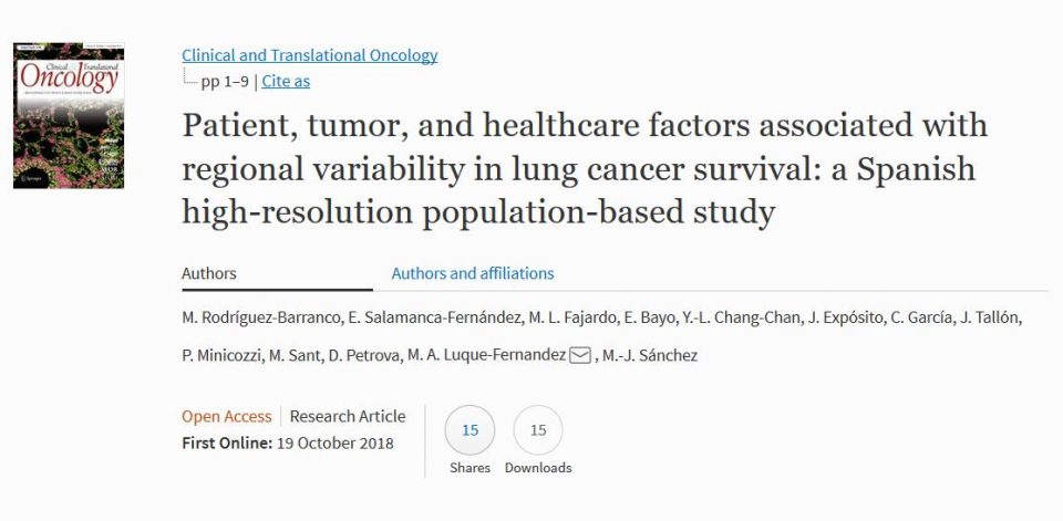 Purpose The third most frequently diagnosed cancer in Europe in 2018 was lung cancer; it is also the leading cause of cancer death in Europe. We studied patient and tumor characteristics, and patterns of healthcare provision explaining regional variability in lung cancer survival in southern Spain. Methods A population-based cohort study included all 1196 incident…