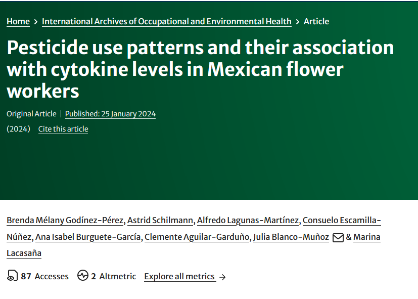 Occupational exposure to pesticides is a known risk for disrupting cellular immune response in flower workers due to their use of multiple chemical products, poor work conditions, and inadequate protection. Recently, the analysis of pesticide use patterns has emerged as an alternative to studying exposure to mixtures of these products. This study aimed to evaluate the association between exposure to different patterns of pesticide use and the cytokine profile of flower workers in the State of Mexico and Morelos, Mexico.