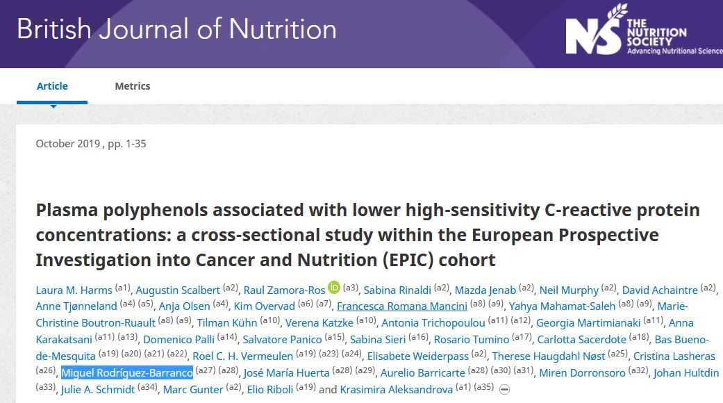 Plasma polyphenols associated with lower high-sensitivity C-reactive protein concentrations: a cross-sectional study within the European Prospective Investigation into Cancer and Nutrition (EPIC) cohort