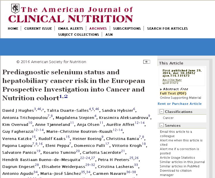 Objective: We wished to examine whether selenium status in advance of cancer onset is associated with hepatobiliary cancers in the EPIC (European Prospective Investigation into Cancer and Nutrition) study.