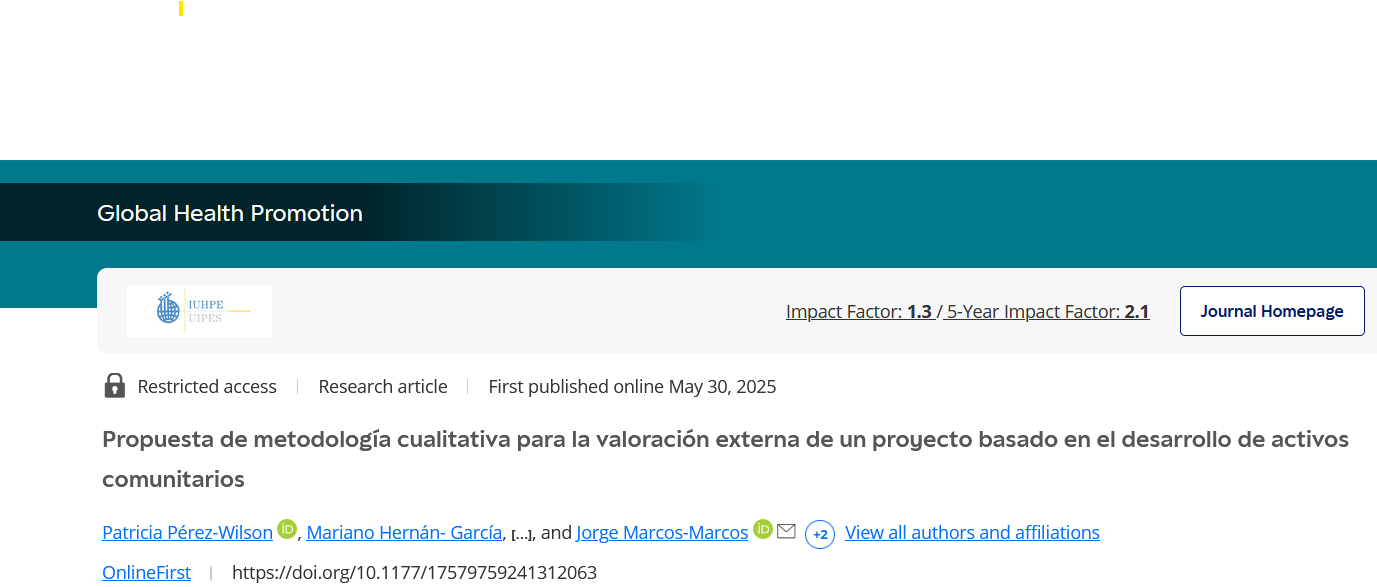 las acciones de promoción de la salud permiten abordar la injusticia de vivir en lugares no suficientemente dignos para ser habitados. Sin embargo, existen pocas metodologías que describan cómo realizar una evaluación externa en intervenciones de promoción de la salud desde una perspectiva de regeneración comunitaria en estos contextos.