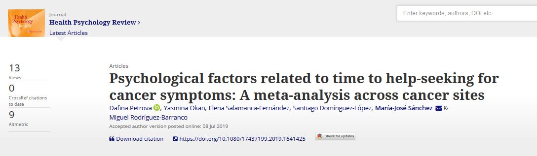 The time patients wait before seeking help for cancer symptoms is among the most important factors contributing to diagnostic delays in cancer. We reviewed the association between time to help-seeking and three psychological factors: symptom knowledge, symptom interpretation, and beliefs about cancer (Prospero review protocol CRD42018088944). Forty-seven studies published between 1990 and 2019 met the inclusion criteria, providing data on 44,961 participants from 22 countries concerning seven cancer sites. A series of random-effects meta-analyses and meta-regressions were conducted. Better symptom knowledge was related to lower odds of a long help-seeking interval in both studies with healthy populations (OR = .73, 95% CI [.63, .84], k = 19) and with patients (OR = .40, 95% CI [.23, .69], k = 12), and so was interpreting experienced symptoms as cancer-related (OR = .52, 95% CI [.36, .75], k = 13 studies with patients). More positive beliefs about cancer (i.e., that cancer is treatable) were associated with lower odds of a long help-seeking interval in both studies with healthy populations (OR = .70, 95% CI [.52, .92], k = 11) and with patients (OR = .51, 95% CI [.32, .82], k = 7). Symptom knowledge, interpretation, and beliefs about cancer are likely to be universal predictors of help-seeking. Theoretical models of patient help-seeking and interventions aiming to reduce delays should incorporate these factors.