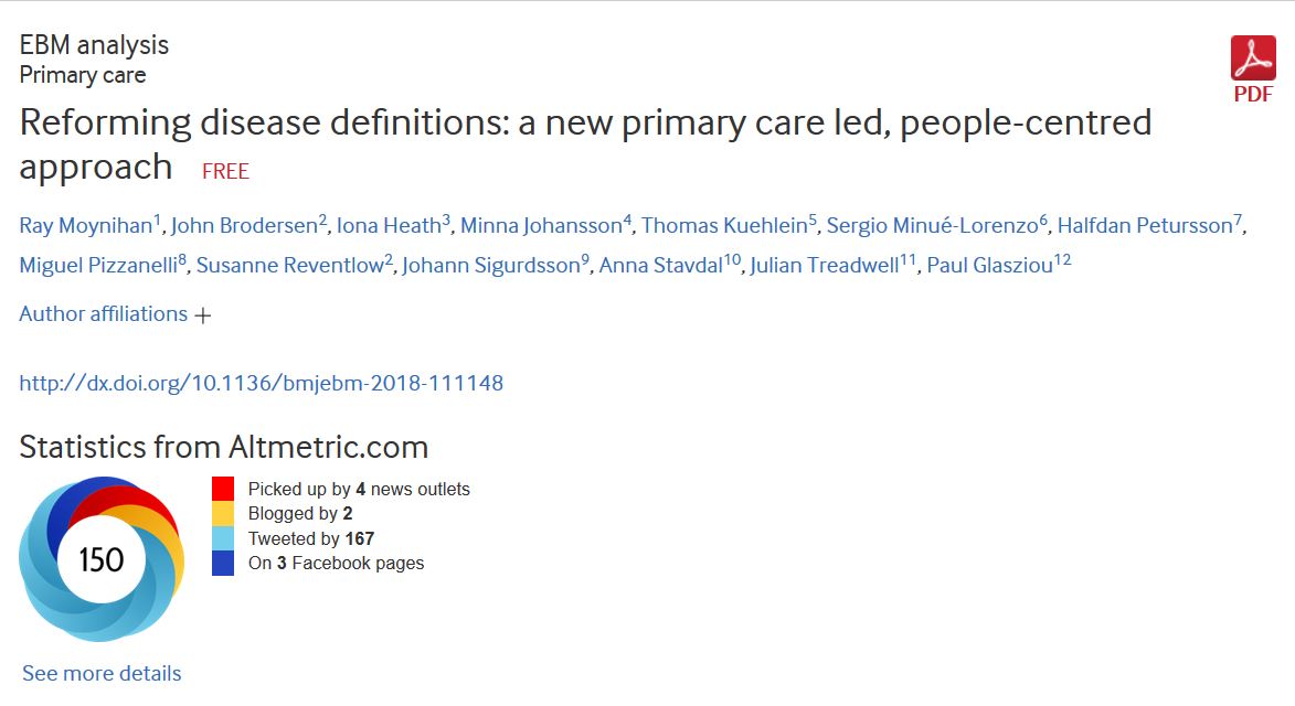 Expanding disease definitions are causing more and more previously healthy people to be labelled as diseased, contributing to the problem of overdiagnosis and related overtreatment. Often the specialist guideline panels which expand definitions have close tis to industry and do not investigate the harms of defining more people as sick. Responding to growing calls to address these problems, an international group of leading researchers and clinicians is proposing a new way to set diagnostic thresholds and mark the boundaries of condition definitions, to try to tackle a key driver of overdiagnosis and overtreatment. The group proposes new evidence-informed principles, with new process and new people constituting new multi-disciplinary panels, free from financial conflicts of interest.