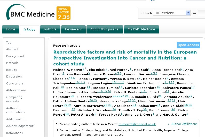 During a mean follow-up of 12.9 years, 14,383 deaths occurred. The HR (95 % CI) for risk of all-cause mortality was lower in parous versus nulliparous women (0.80; 0.76–0.84), in women who had ever versus never breastfed (0.92; 0.87–0.97), in ever versus never users of oral contraceptives (among non-smokers; 0.90; 0.86–0.95), and in women reporting a later age at menarche (≥15 years versus <12; 0.90; 0.85–0.96; P for trend = 0.038).