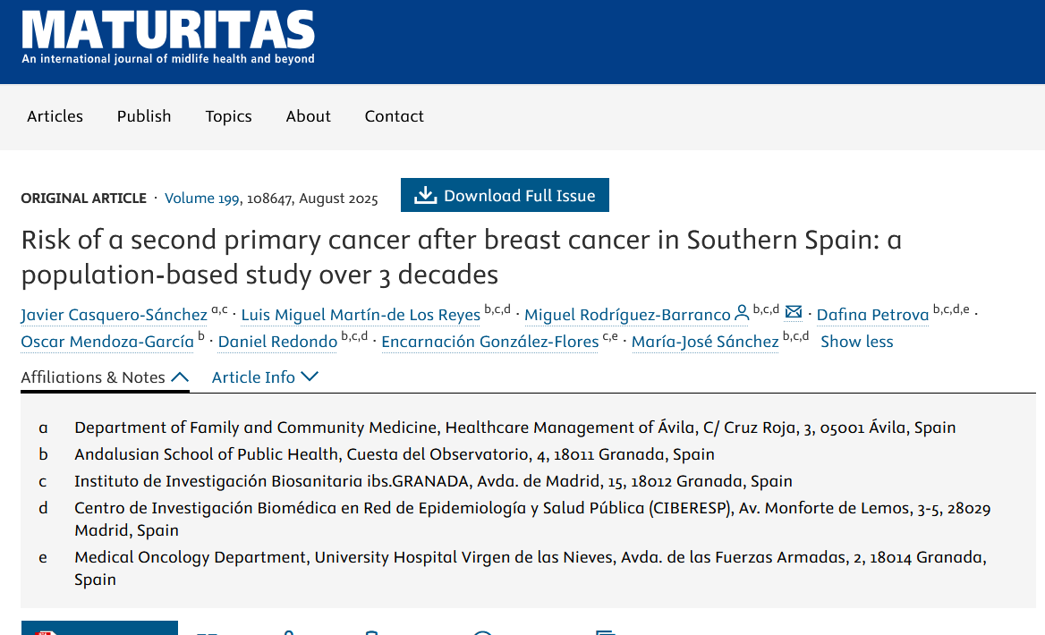 To estimate the risk of developing a second primary cancer (SPC) among women diagnosed with breast cancer in Granada, Spain.