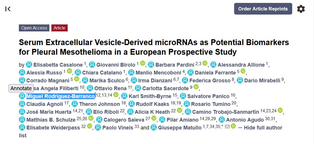 Malignant pleural mesothelioma (MPM) is an aggressive cancer with a dismal prognosis. Early therapeutic interventions could improve patient outcomes. We aimed to identify a pattern of microRNAs (miRNAs) as potential early non-invasive markers of MPM. In a case-control study nested in the European Prospective Investigation into Cancer and Nutrition cohort, we screened the whole miRNome in serum extracellular vesicles (EVs) of preclinical MPM cases. In a subgroup of 20 preclinical samples collected five years prior MPM diagnosis, we observed an upregulation of miR-11400 (fold change (FC) = 2.6, adjusted p-value = 0.01), miR-148a-3p (FC = 1.5, p-value = 0.001), and miR-409-3p (FC = 1.5, p-value = 0.04) relative to matched controls. The 3-miRNA panel showed a good classification capacity with an area under the receiver operating characteristic curve (AUC) of 0.81 (specificity = 0.75, sensitivity = 0.70). The diagnostic ability of the model was also evaluated in an independent retrospective cohort, yielding a higher predictive power (AUC = 0.86). A signature of EV miRNA can be detected up to five years before MPM; moreover, the identified miRNAs could provide functional insights into the molecular changes related to the late carcinogenic process, preceding MPM development.