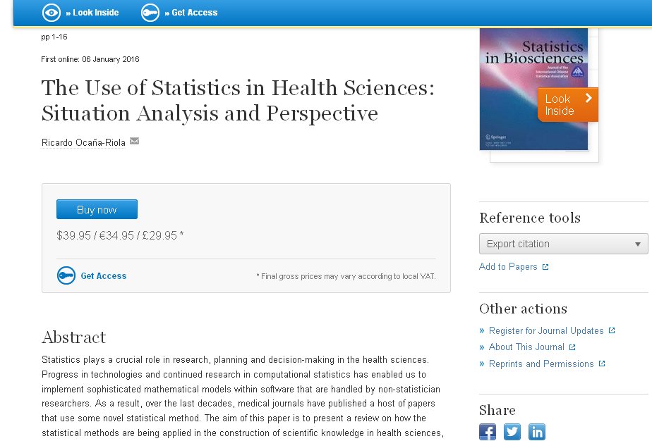 Statistics plays a crucial role in research, planning and decision-making in the health sciences. Progress in technologies and continued research in computational statistics has enabled us to implement sophisticated mathematical models within software that are handled by non-statistician researchers. As a result, over the last decades, medical journals have published a host of papers that use some novel statistical method. The aim of this paper is to present a review on how the statistical methods are being applied in the construction of scientific knowledge in health sciences, as well as, to propose some improvement actions. From the early twentieth century, there has been a remarkable surge in scientific evidence alerting on the errors that many non-statistician researchers were making in applying statistical methods. Today, several studies continue showing that a large percentage of articles published in high-impact factor journals contain errors in data analysis or interpretation of results, with the ensuing repercussions on the validity and efficiency of the research conducted. Scientific community should reflect on the causes that have led to this situation, the consequences to the advancement of scientific knowledge and the solutions to this problem.