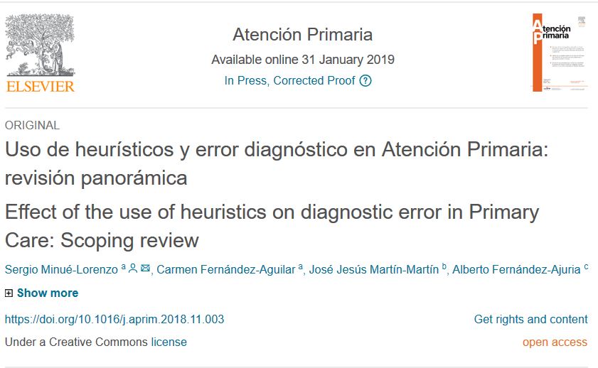 La evidencia empírica disponible sobre la utilización de heurísticos y su papel en el error diagnóstico en condiciones reales es limitada. En particular, en el caso del proceso de decisión diagnóstica en Atención Primaria la evidencia es prácticamente inexistente.