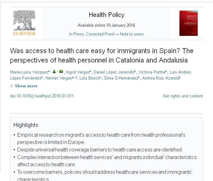 Until April 2012, all Spanish citizens were entitled to health care and policies had been developed at national and regional level to remove potential barriers of access, however, evidence suggested problems of access for immigrants. In order to identify factors affecting immigrants’ access to health care, we conducted a qualitative study based on individual interviews with healthcare managers (n = 27) and professionals (n = 65) in Catalonia and Andalusia, before the policy change that restricted access for some groups. A thematic analysis was carried out. Health professionals considered access to health care “easy” for immigrants and similar to access for autochthons in both regions. Clear barriers were identified to enter the health system (in obtaining the health card) and in using services, indicating a mismatch between the characteristics of services and those of immigrants. Results did not differ among regions, except for in Catalonia, where access to care was considered harder for users without a health card, due to the fees charged, and in general, because of the distance to primary health care in rural areas. In conclusion, despite the universal coverage granted by the Spanish healthcare system and developed health policies, a number of barriers in access emerged that would require implementing the existing policies. However, the measures taken in the context of the economic crisis are pointing in the opposite direction, towards maintaining or increasing barriers.