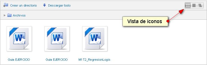 Por último, comentar que si tenemos muchos archivos podemos visualizarlos de distinta forma. A continuación mostramos las tres "Vistas" de archivos disponibles: