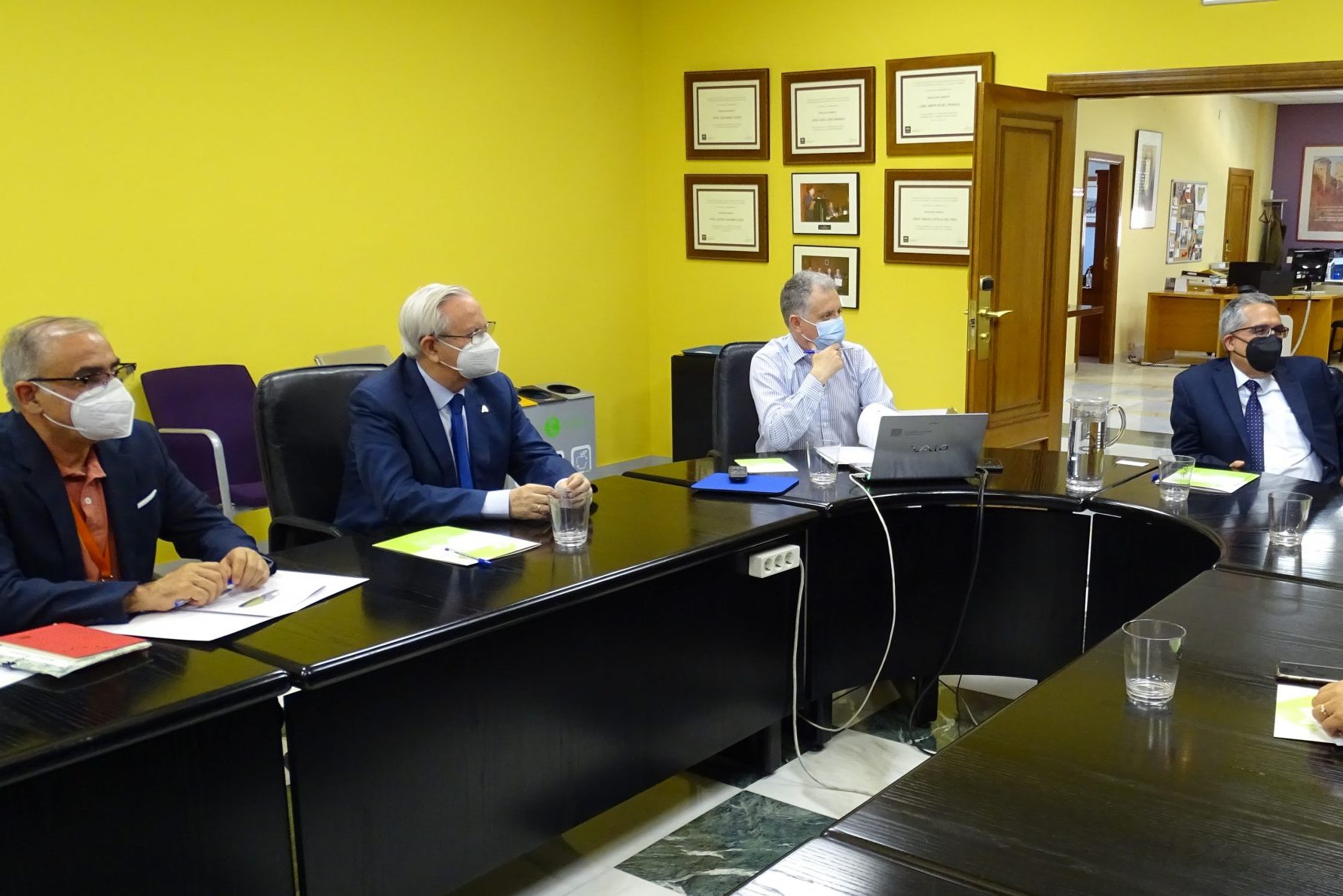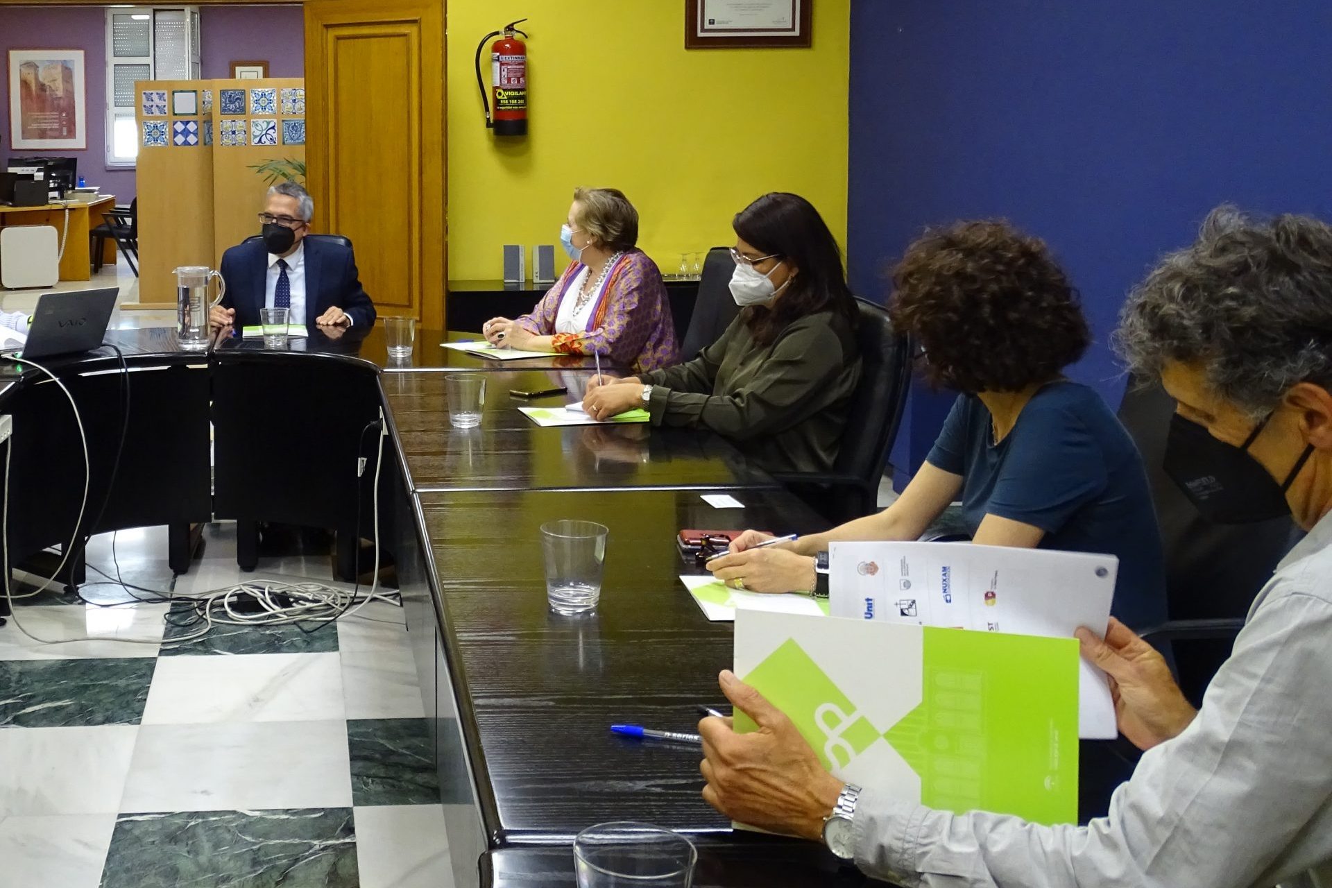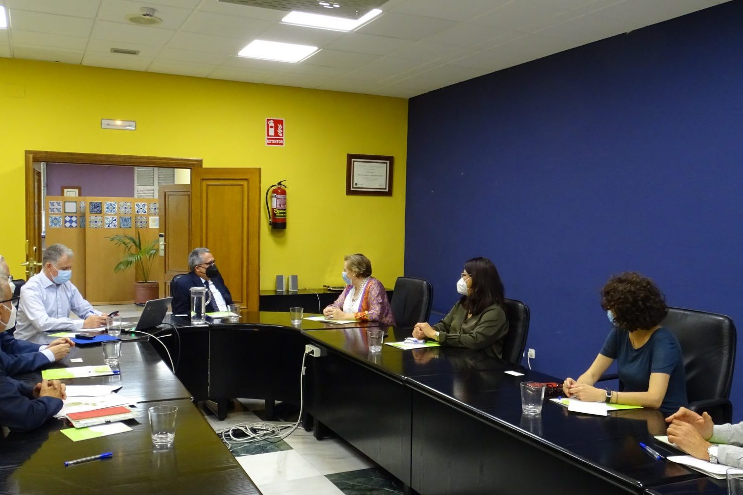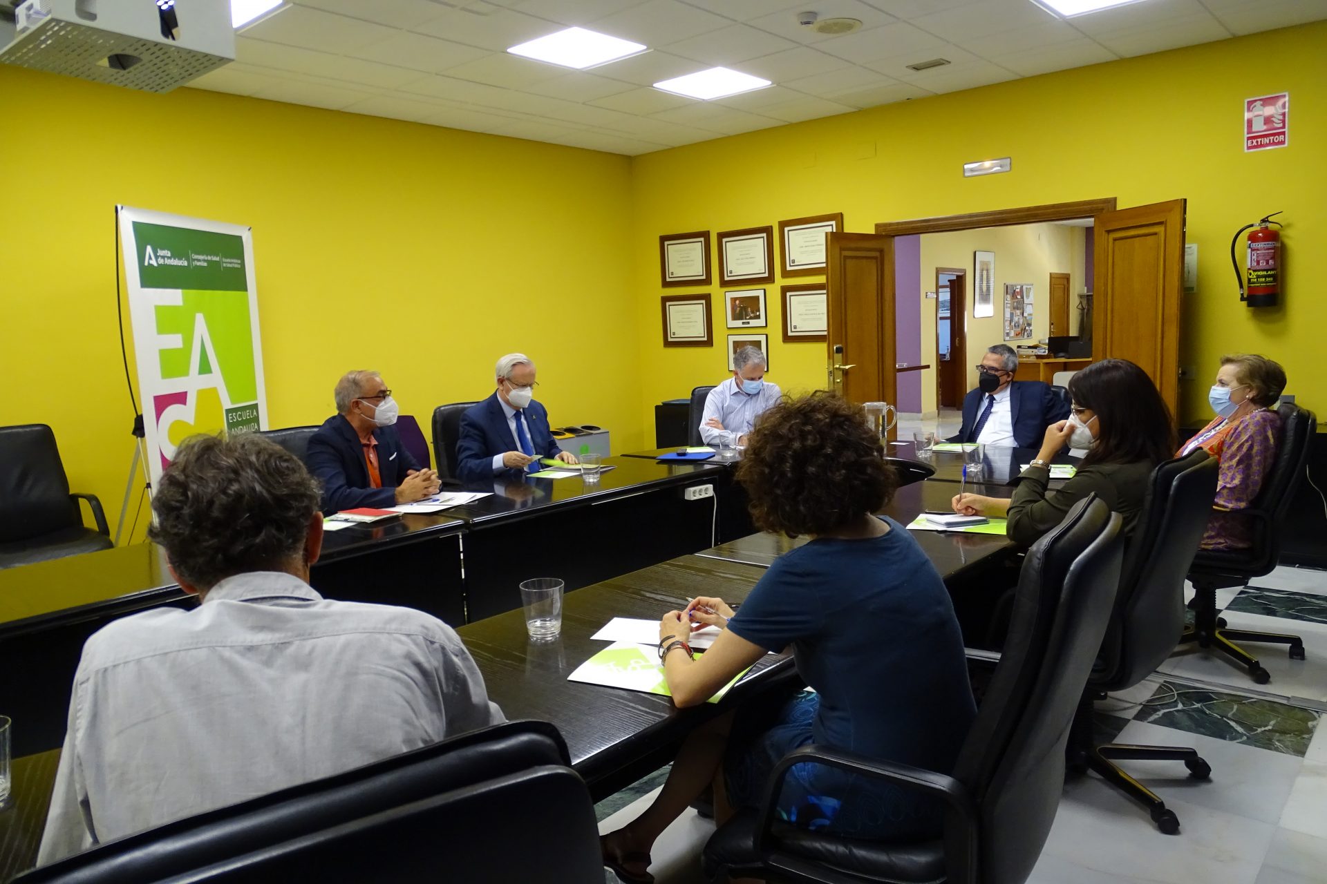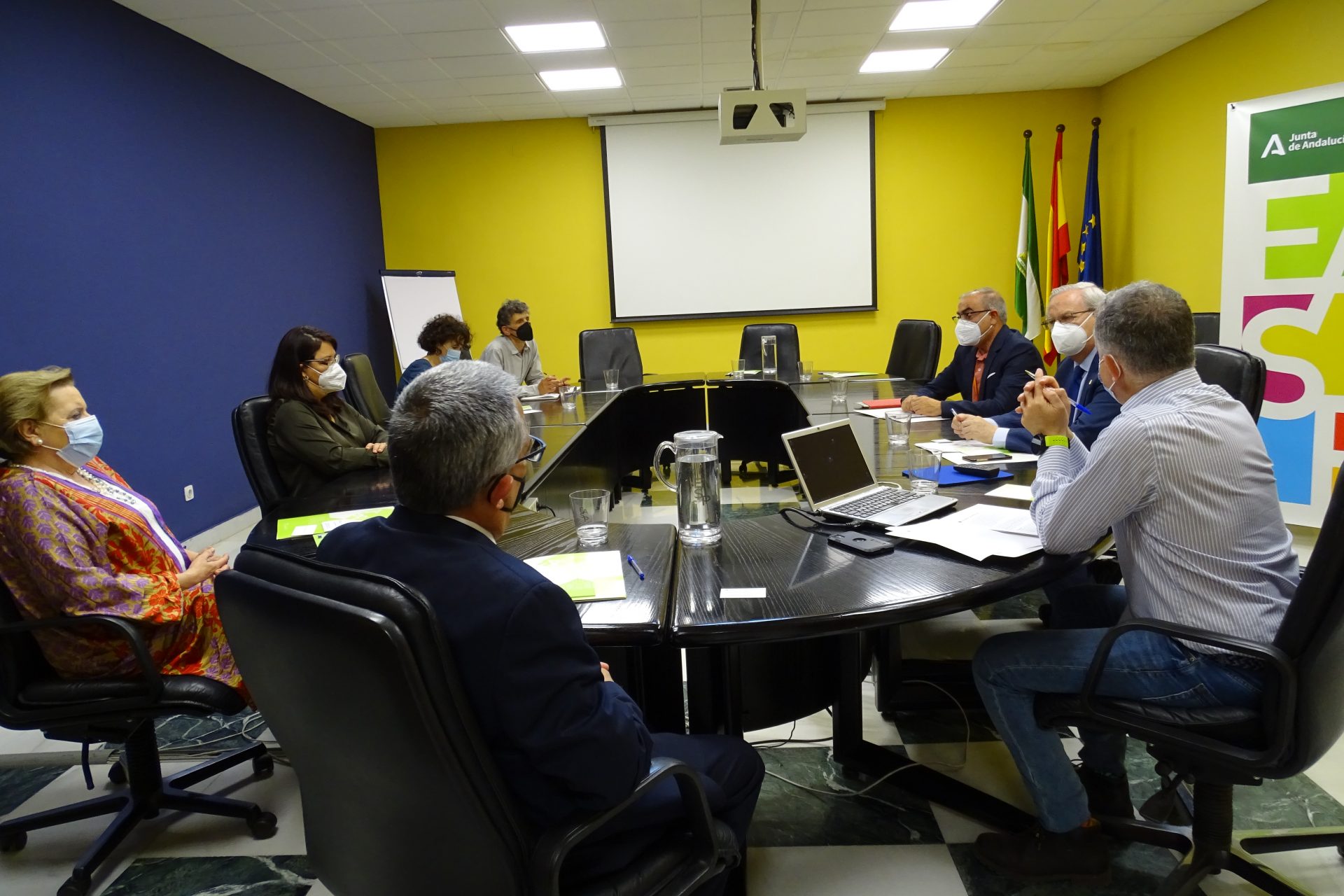 La reunión contó con la participación del viceconsejero de Salud y Familia, D. Serafín Romero, y asistieron por parte de la EASP, su directora gerente, Dª Blanca Fernández-Capel, junto al subdirector de Sistemas de Información, D. José Rodríguez; el responsable de Salud Internacional, D. José Martínez; el profesor de dicha área, D. Ángel Gómez; la responsable de la Comision de Docencia, Dª Pilar Navarro, y la adjunta a dirección, Dª Carmen Valcárcel.