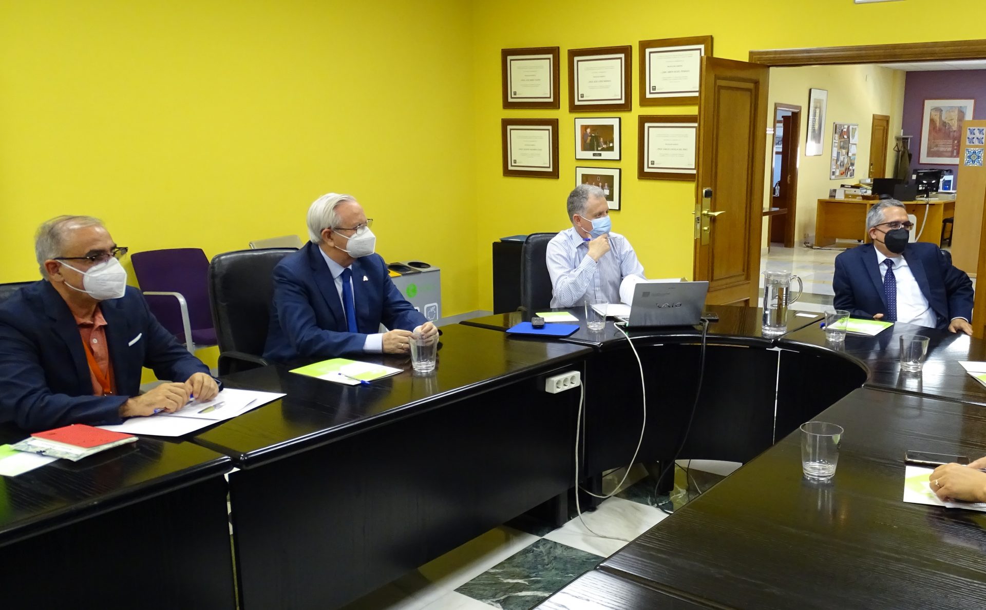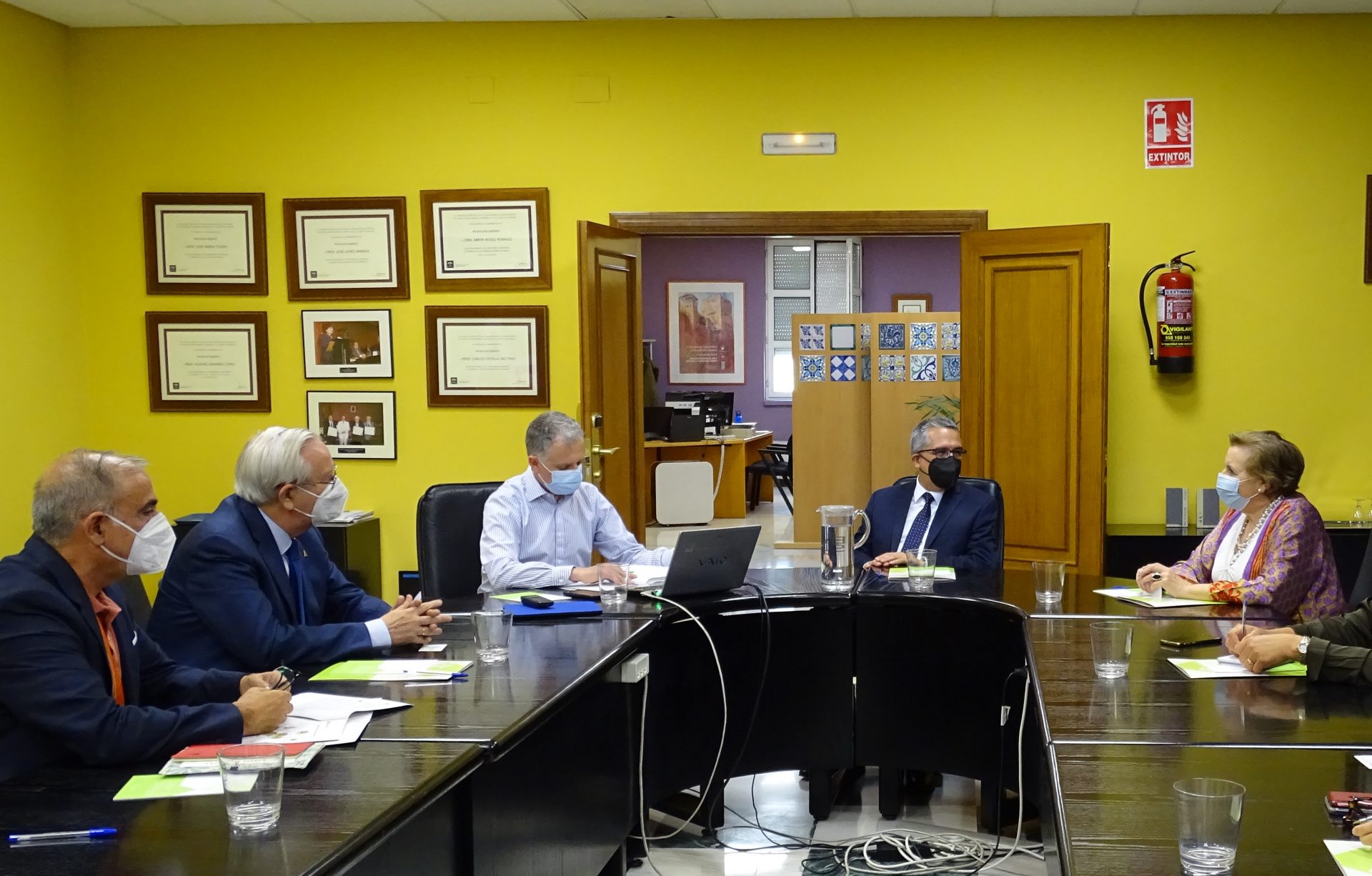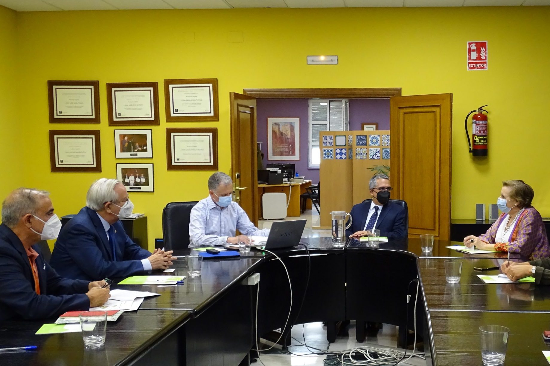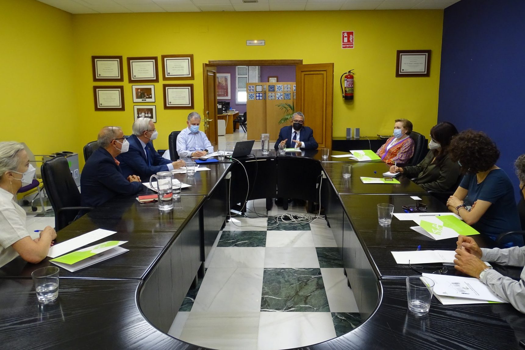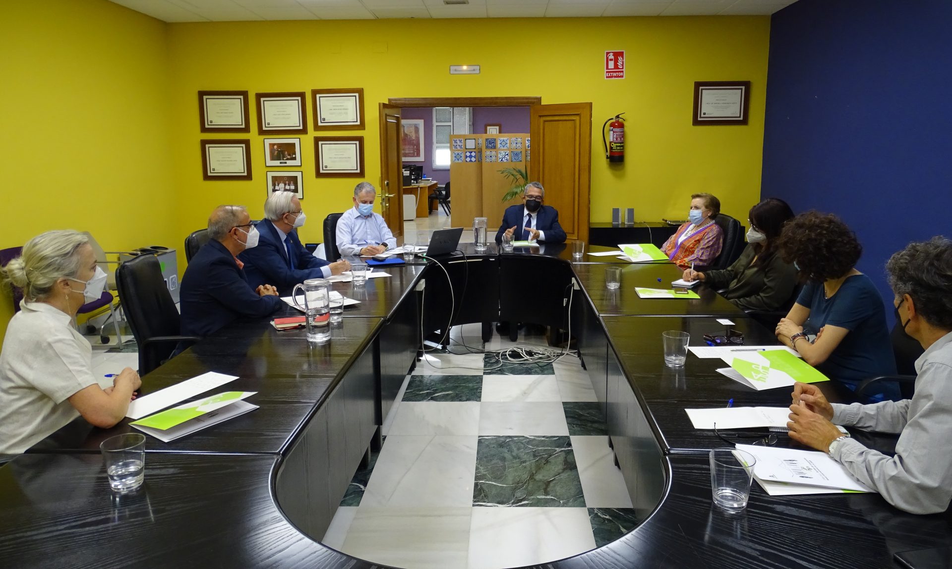 La reunión contó con la participación del viceconsejero de Salud y Familia, D. Serafín Romero, y asistieron por parte de la EASP, su directora gerente, Dª Blanca Fernández-Capel, junto al subdirector de Sistemas de Información, D. José Rodríguez; el responsable de Salud Internacional, D. José Martínez; el profesor de dicha área, D. Ángel Gómez; la responsable de la Comision de Docencia, Dª Pilar Navarro, y la adjunta a dirección, Dª Carmen Valcárcel.