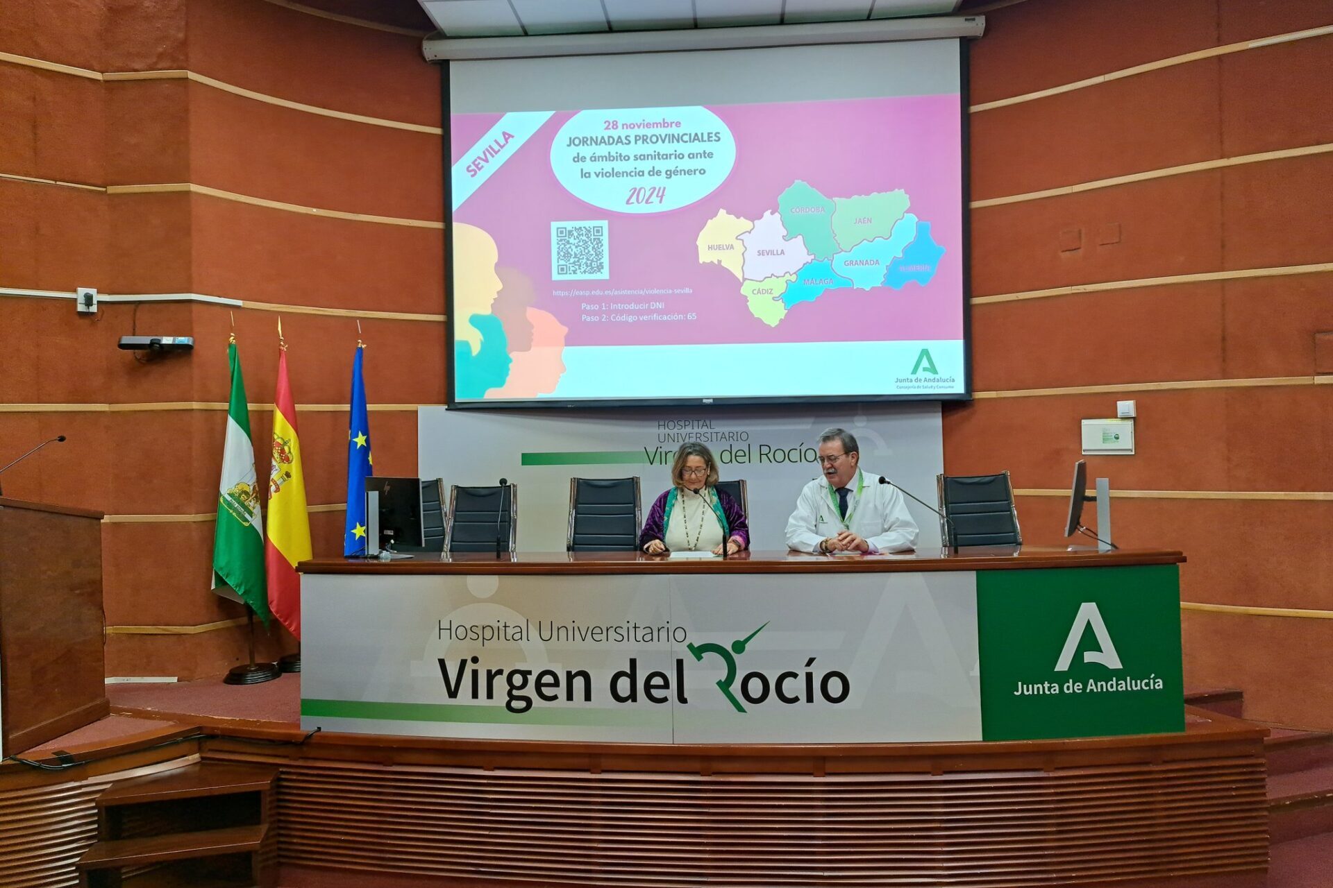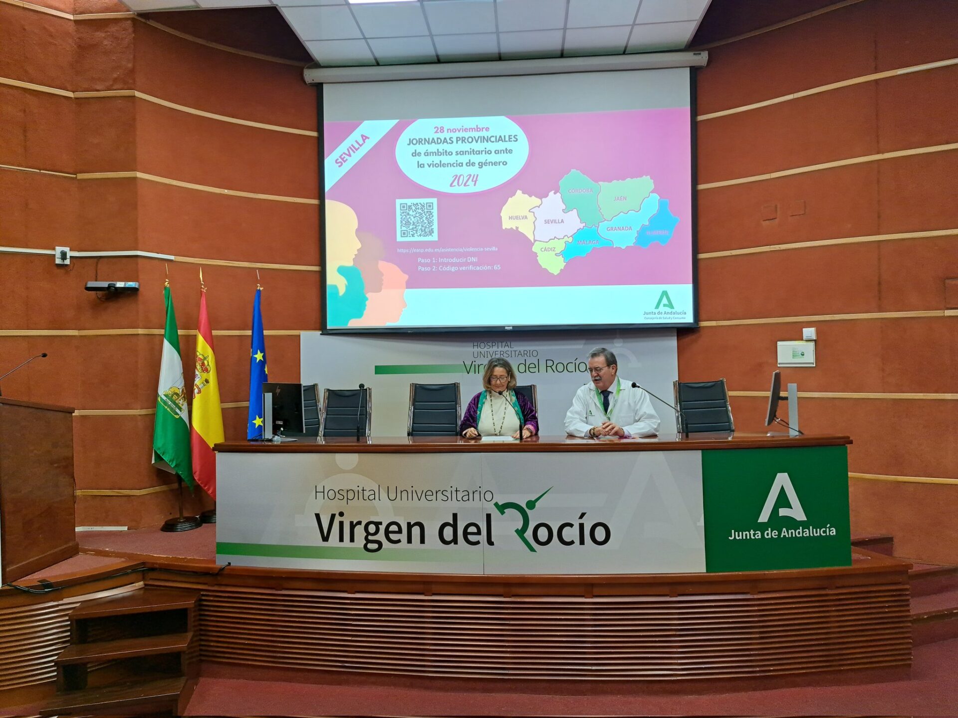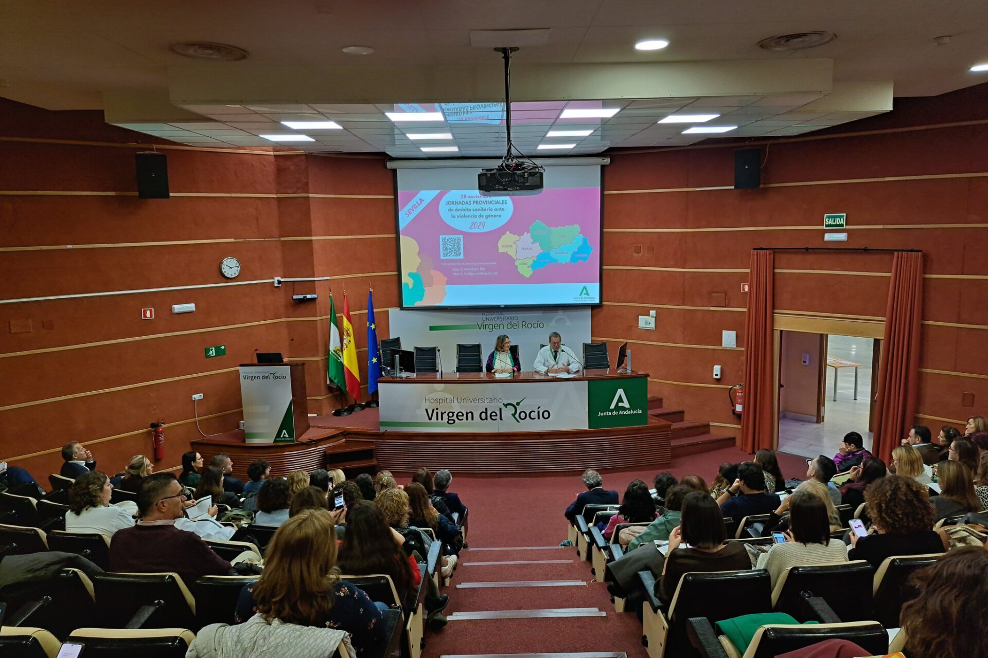 La Delegación Territorial de Salud y Consumo en Sevilla, en colaboración con la Dirección General de Salud Pública y Ordenación Farmacéutica de la Consejería del ramo y la Escuela Andaluza de Salud Pública (EASP), han organizado hoy, por segundo año consecutivo, las jornadas provinciales en las que, cerca de 200 profesionales de distintas administraciones, cuerpos de seguridad, agentes sociales y responsables políticos se han reunido en el Aula Magna del Hospital Universitario Virgen del Rocío para analizar las actuaciones puestas en marcha en la provincia, y debatir alternativas y estrategias que contribuyan a mejorar la atención y la coordinación en los casos de violencia de género (VG) desde el ámbito sanitario.