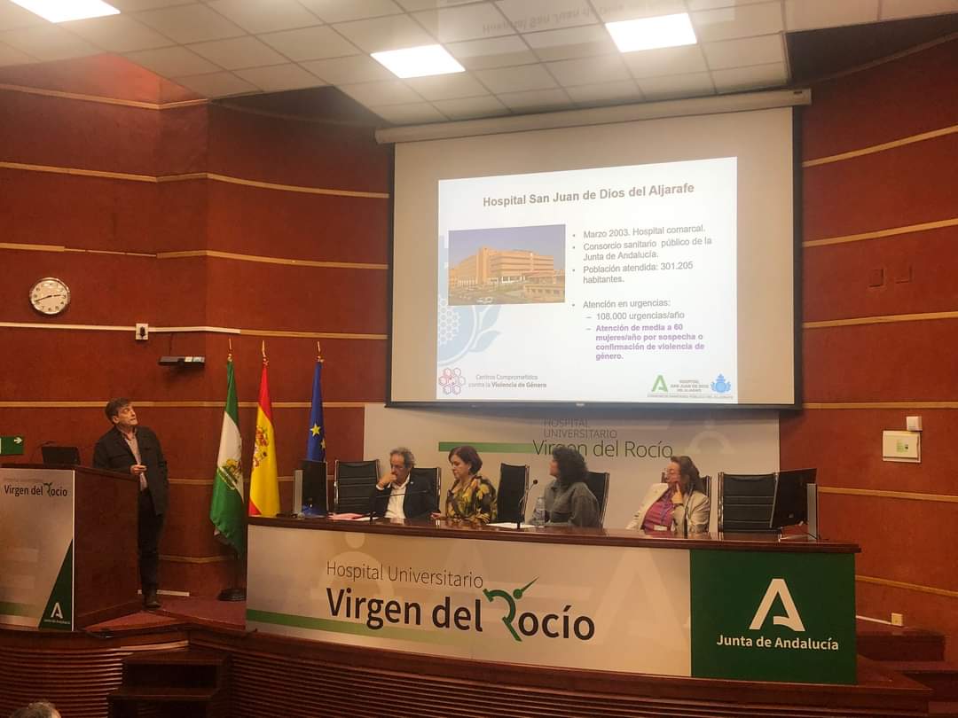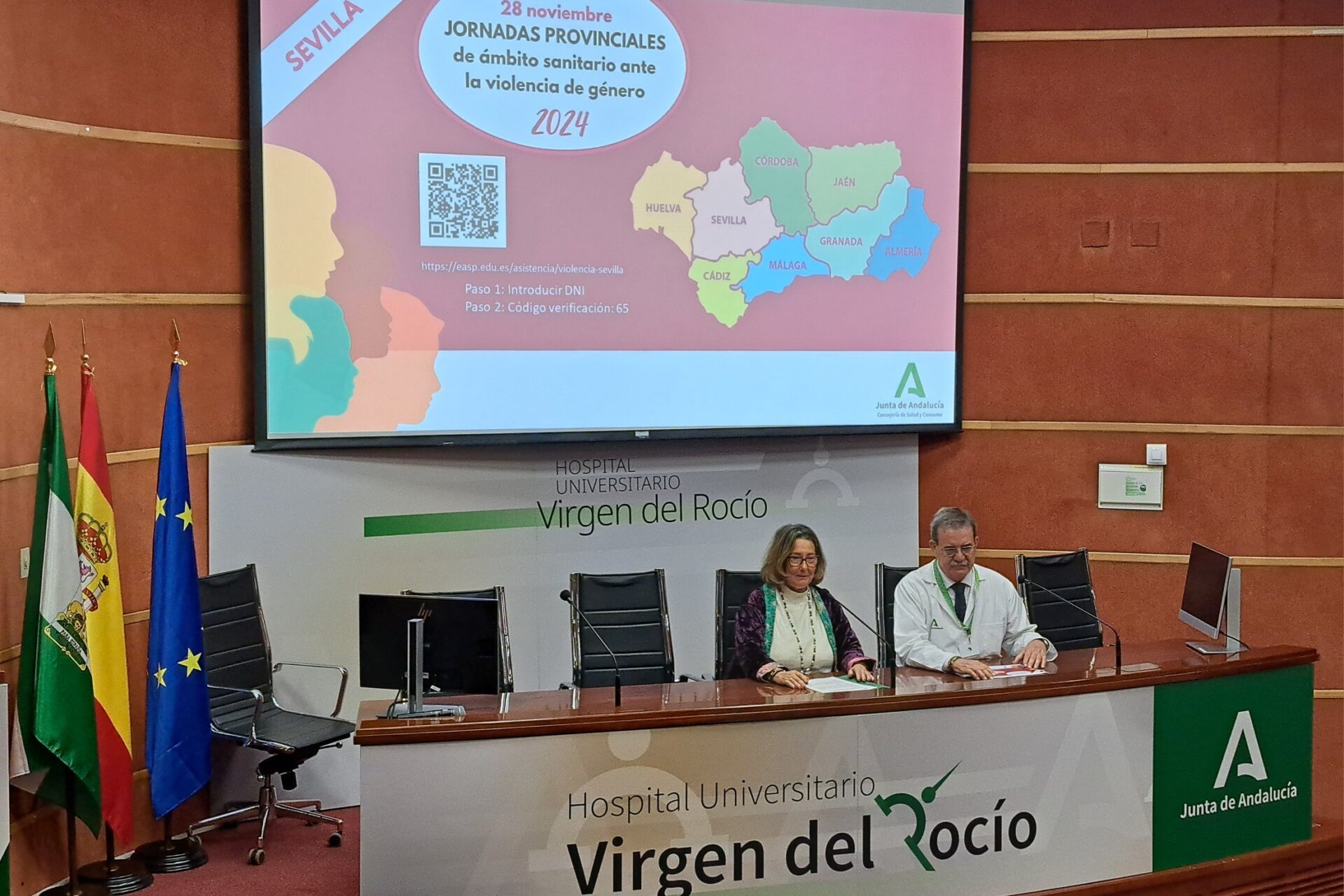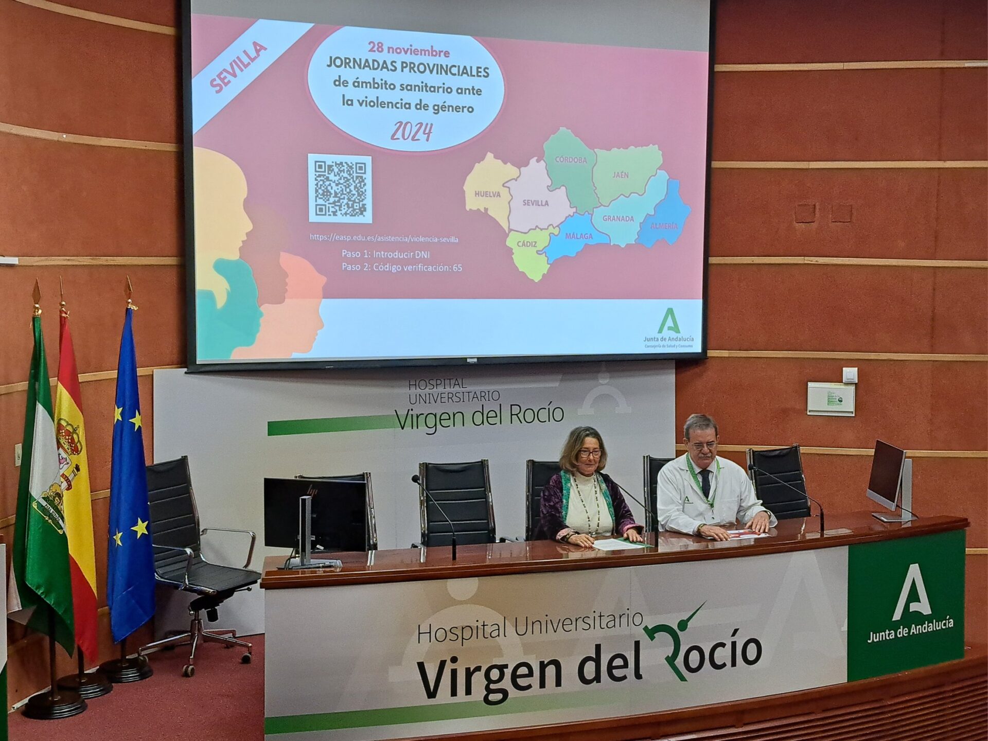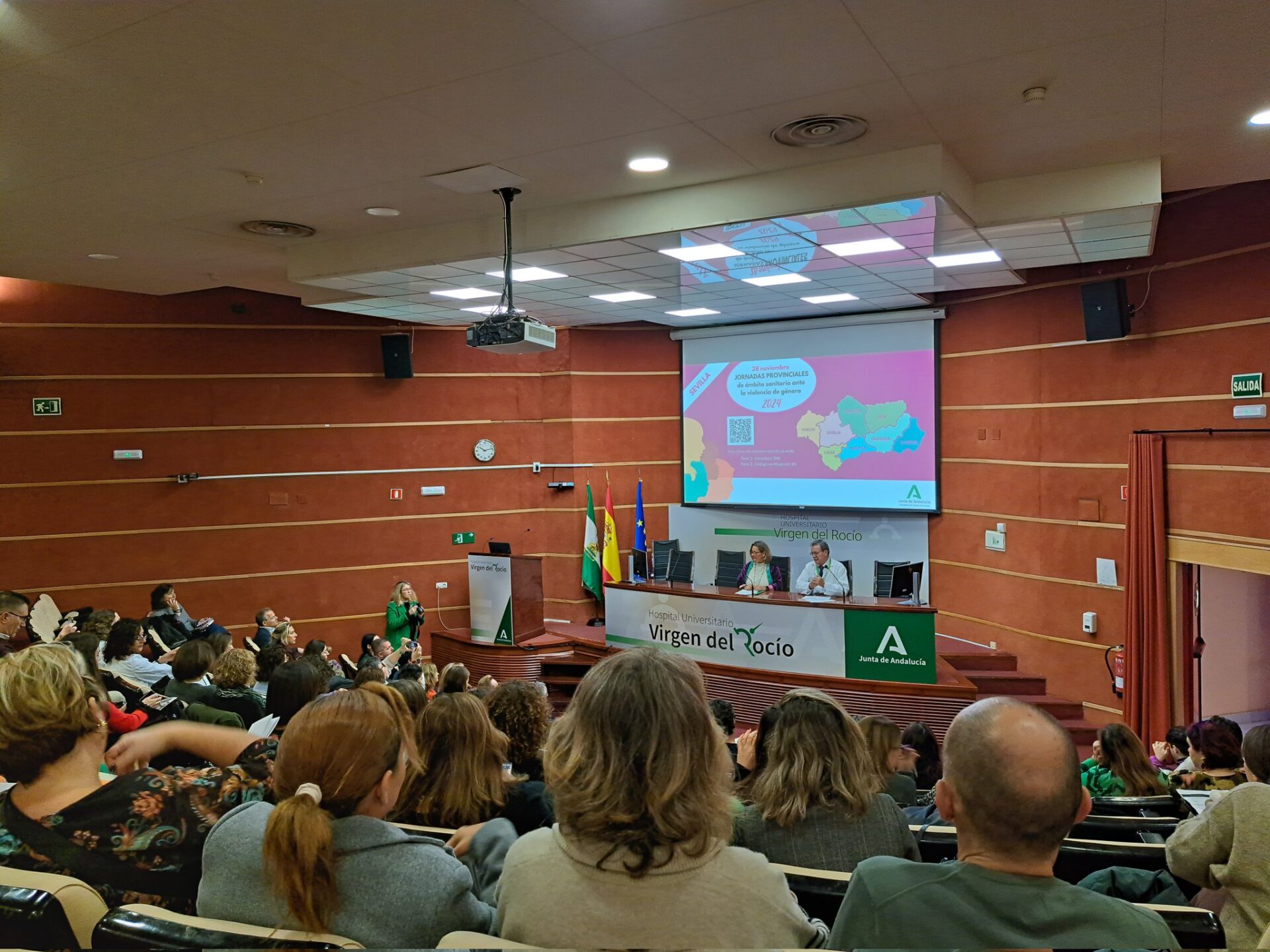 La Delegación Territorial de Salud y Consumo en Sevilla, en colaboración con la Dirección General de Salud Pública y Ordenación Farmacéutica de la Consejería del ramo y la Escuela Andaluza de Salud Pública (EASP), han organizado hoy, por segundo año consecutivo, las jornadas provinciales en las que, cerca de 200 profesionales de distintas administraciones, cuerpos de seguridad, agentes sociales y responsables políticos se han reunido en el Aula Magna del Hospital Universitario Virgen del Rocío para analizar las actuaciones puestas en marcha en la provincia, y debatir alternativas y estrategias que contribuyan a mejorar la atención y la coordinación en los casos de violencia de género (VG) desde el ámbito sanitario.