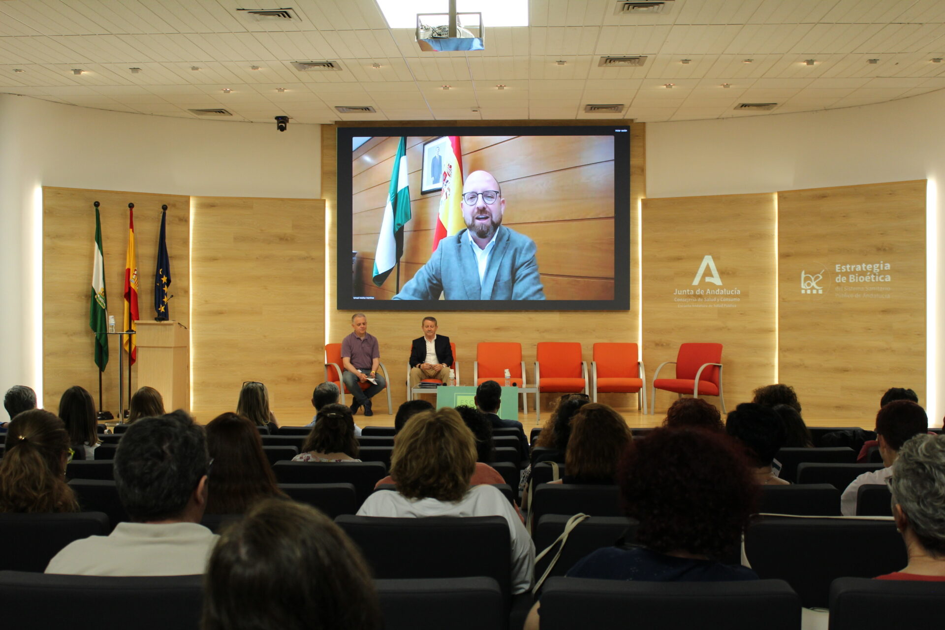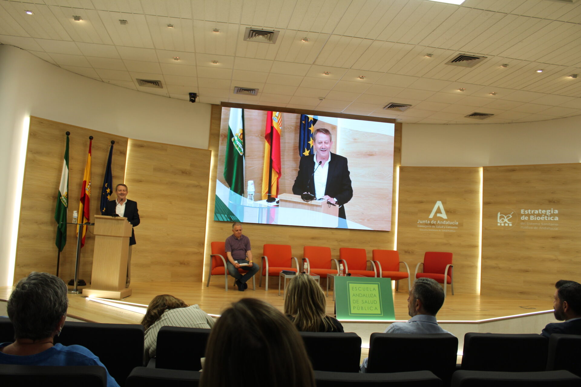En el tramo central de la Jornada se ha presentado el marco actual de la bioética en Andalucía, con la participación de responsables clave como el presidente del Comité de Bioética de Andalucía, Eloy Girela y el coordinador de la Estrategia de Bioética del SSPA, José María Domínguez. Este bloque ha servido para situar el papel articulador de la bioética en el Sistema Sanitario Público Andaluz (SSPA). La Jornada ha tenido un formato híbrido (presencial y online), y podrá verse en diferido en la web de la EASP.