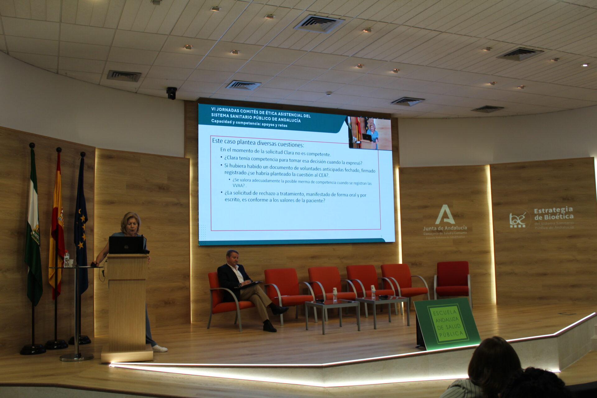 Una parte especialmente valiosa de la Jornada ha sido la dedicada a mesas de comunicaciones, con experiencias prácticas de los diferentes CEA andaluces. Distribuidas en dos sesiones, han dado a conocer el trabajo realizado en casos relacionados con decisiones clínicas complejas en pacientes con demencias avanzadas, con tratamiento de datos sensibles en la historia clínica, protocolos para la toma de decisiones en pacientes institucionalizados, la mortalidad pediátrica en cuidados paliativos, y la atención sanitaria a menores en demanda de anticoncepción de urgencia.