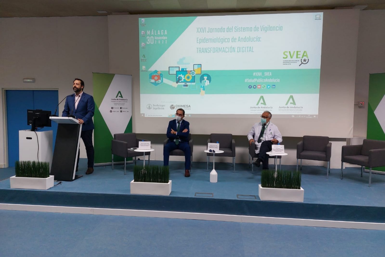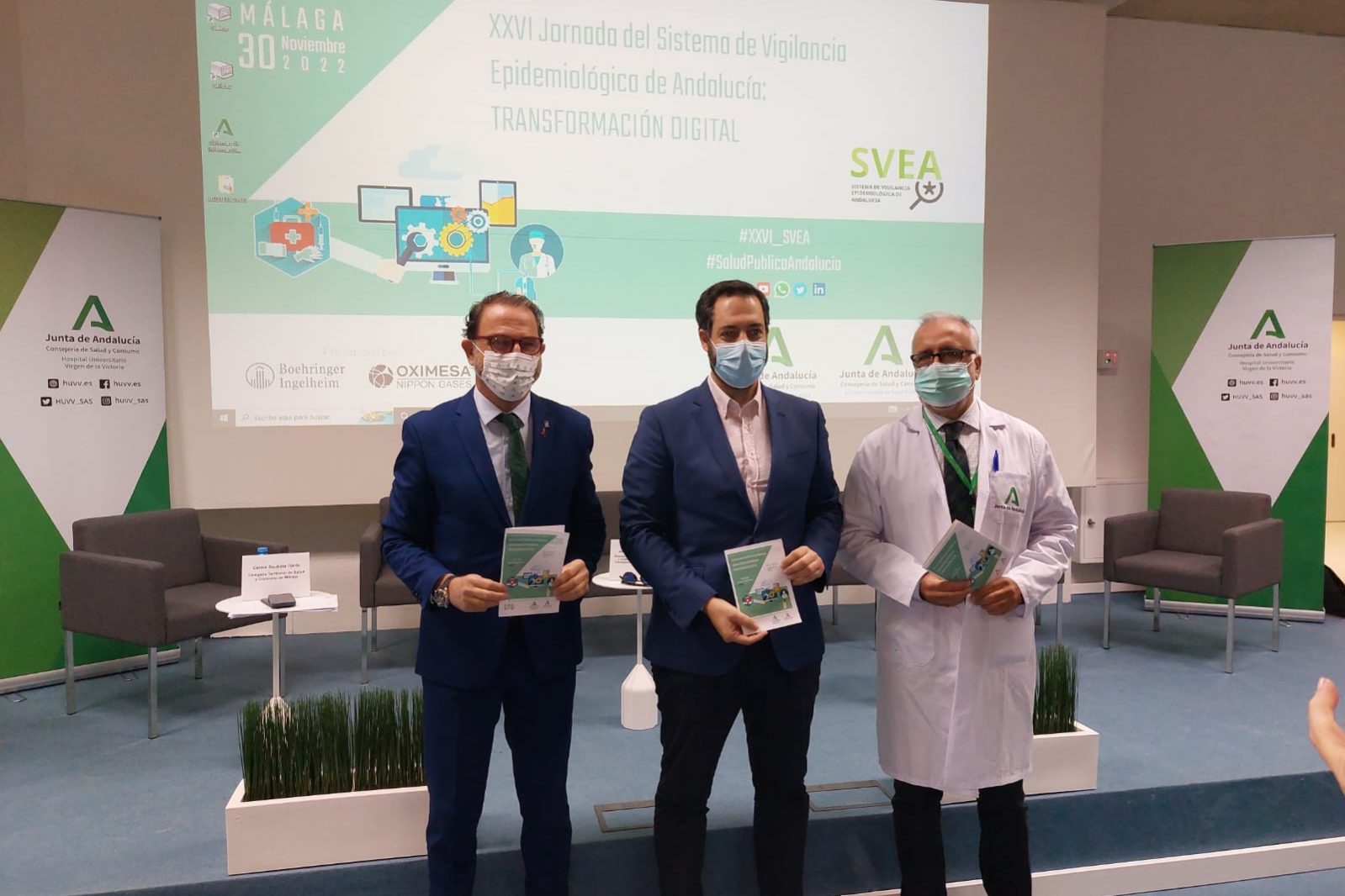 El viceconsejero de Salud y Consumo de la Junta de Andalucía, Miguel Ángel Guzmán, ha clausurado, junto al director general de Salud Pública y Ordenación Farmacéutica, Jorge del Diego, la XXVI Jornada del Sistema de Vigilancia Epidemiológica de Andalucía que se ha celebrado este miércoles en el Hospital Virgen de la Victoria de Málaga, con el objetivo de abordar la transformación digital de la red de vigilancia en Salud Pública.