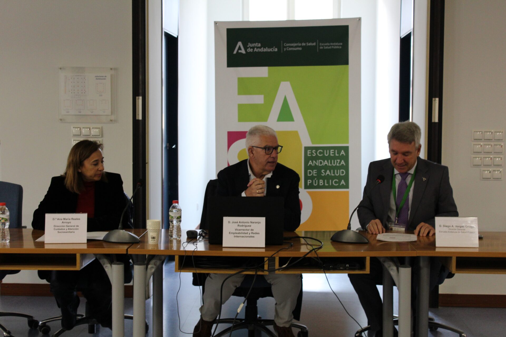 El inicio de esta IV edición ha contado con la presencia del vicerrector de Empleabilidad y Redes Internacionales de la UNIA, José Antonio Naranjo; la directora general de Cuidados y Atención Sociosanitaria de la Consejería de Salud y Consumo, Ana Mª Reales, y el director gerente de la EASP, Diego A. Vargas, así como los directores académicos del Máster, Eva Martín, profesional de la EASP, y Serafín Fernández, asesor técnico del Servicio Andaluz de Salud (SAS).