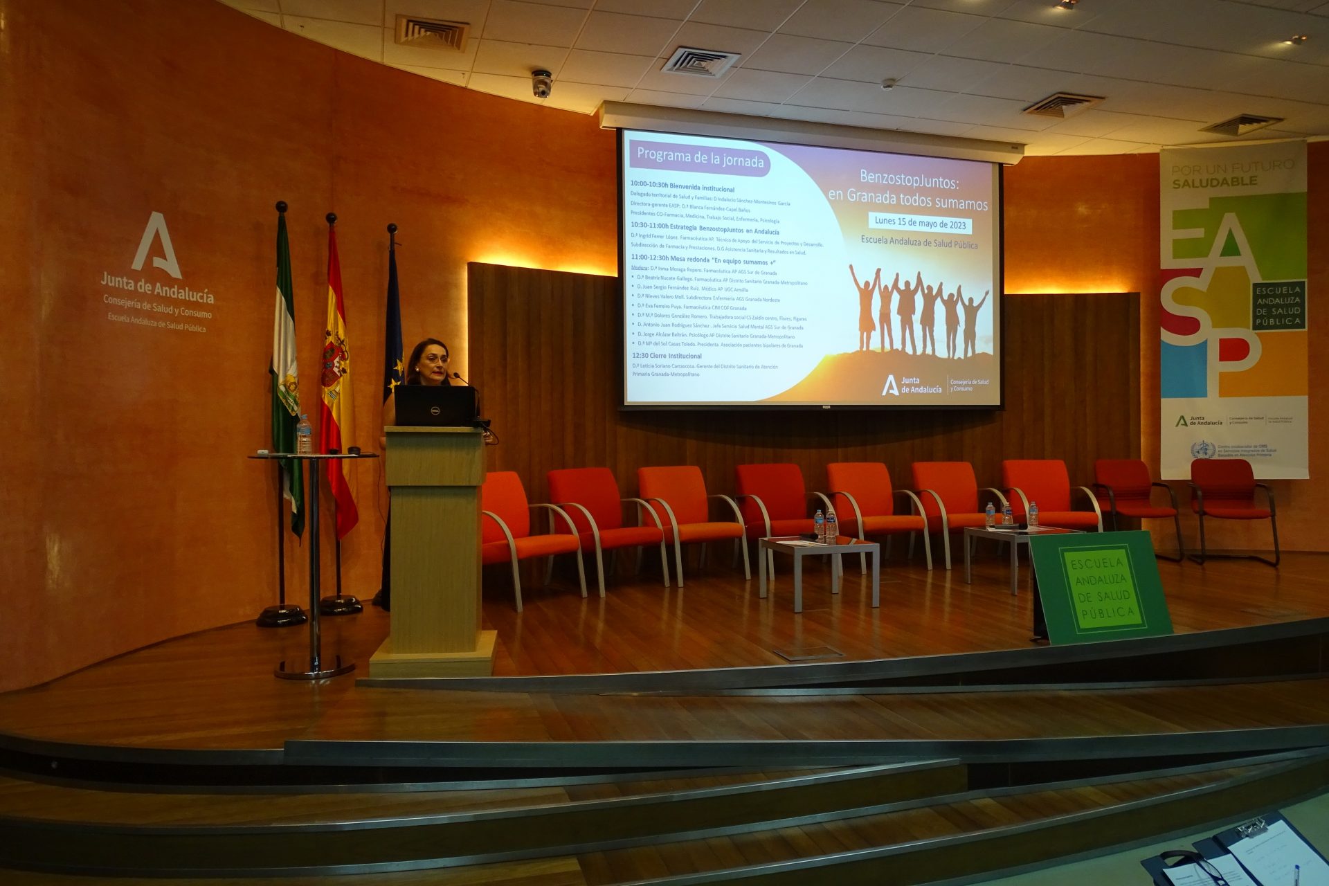Como parte de la puesta en marcha de BenzoStopJuntos, hoy se celebra en la Escuela Andaluza de Salud Pública, una Jornada dirigida a profesionales, en la que se contará la estrategia del programa y en la que profesionales de farmacia de Atención Primaria, Hospital y farmacia comunitaria, medicina de familia, psicología, enfermería, trabajo social y pacientes debatirán acerca del papel y responsabilidad de cada uno en alcanzar el objetivo de disminuir el consumo y reducir la dependencia de estos fármacos.