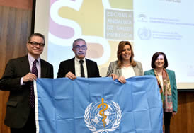 Susana Díaz ha explicado que la primera designación de la EASP como centro colaborador de la OMS la obtuvo en mayo de 1989, hasta 2006; en 2011 se volvió a solicitar hasta 2017. Esta trayectoria de colaboración con instituciones internacionales «ha reforzado el papel de Andalucía y del Sistema Sanitario Público andaluz como un referente para otros países».