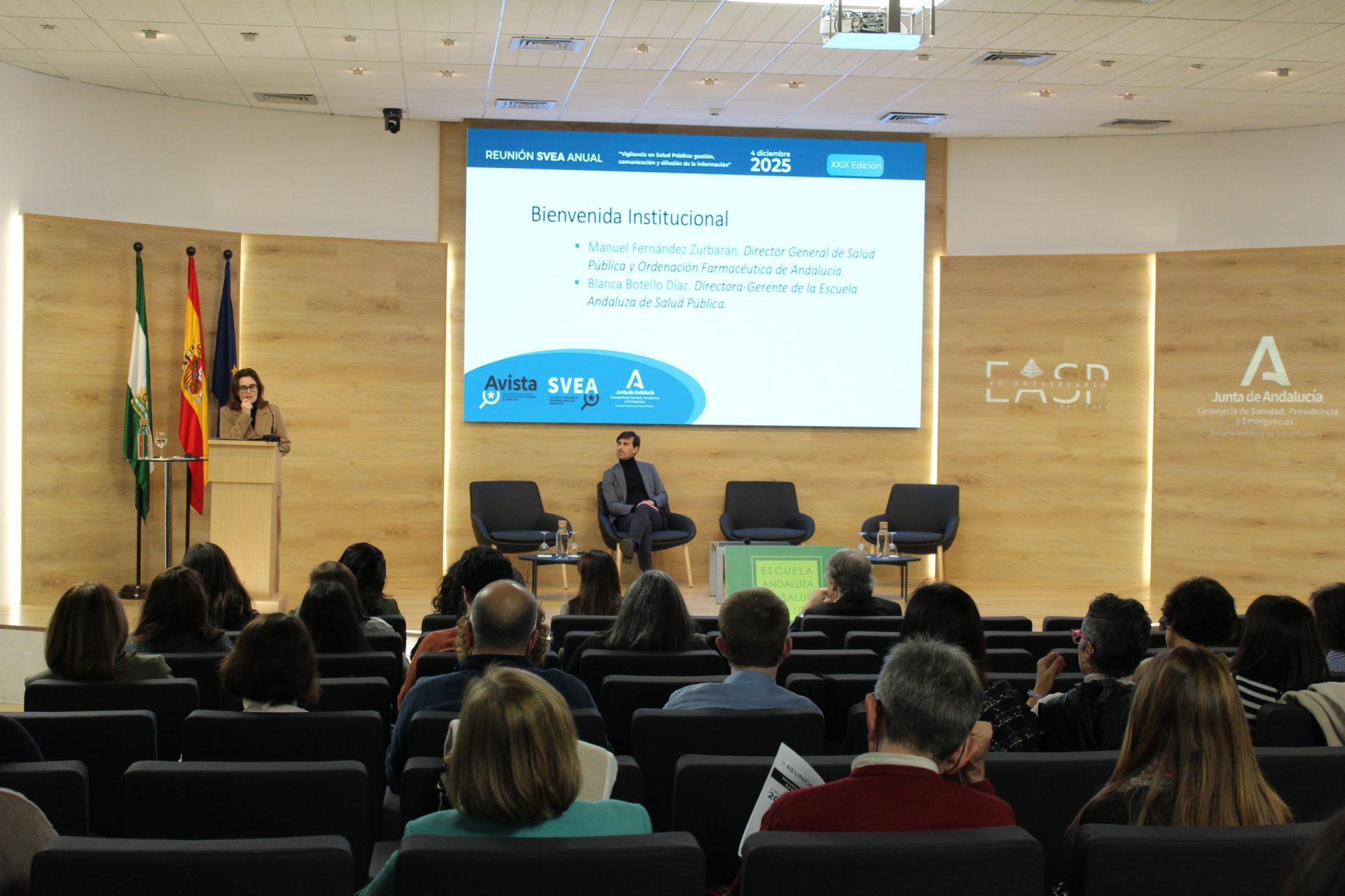 La XXIX Reunión del Sistema de Vigilancia Epidemiológica de Andalucía, que se está celebrando en la Escuela Andaluza de Salud Pública (EASP), perteneciente a la Consejería de Sanidad, Presidencia y Emergencias, es un encuentro ya consolidado que vuelve a reunir a profesionales de la red de vigilancia y de diferentes áreas de la salud pública. La Jornada, organizada junto a la Dirección General de Salud Pública y Ordenación Farmacéutica, se desarrolla a lo largo del día en formato presencial y online, y tiene como propósito reforzar el análisis y el intercambio de experiencias en la gestión de alertas, la comunicación del riesgo y el uso estratégico de la información epidemiológica.