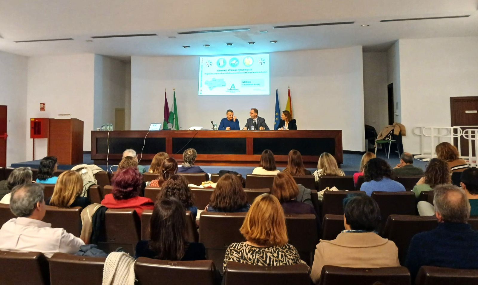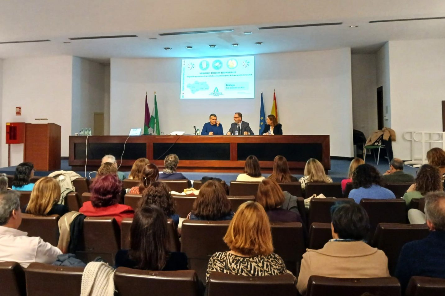 Medio centenar de profesionales adscritos a los distritos sanitarios del Servicio Andaluz de Salud (SAS) de la provincia se han dado cita en la Jornada Técnica Provincial sobre Programas y Proyectos de Promoción de la Salud que ha organizado la Delegación de la Consejería de Sanidad de la Junta de Andalucía en Málaga con el objetivo de analizar el desarrollo e implementación de los diferentes programas y proyectos de promoción de la salud en la provincia. El encuentro, dirigido a referentes de la Delegación, responsables de la Estrategia de Promoción de la Salud y personas gestoras de programas en los distritos sanitarios de atención primaria y áreas de gestión sanitaria, representantes de atención integral a la infancia y adolescencia y perfiles de coordinación como las enfermeras escolares o comunitarias, así como miembros de los equipos directivos, ha contado con la presencia del delegado territorial de la Consejería de Sanidad, Carlos Bautista.