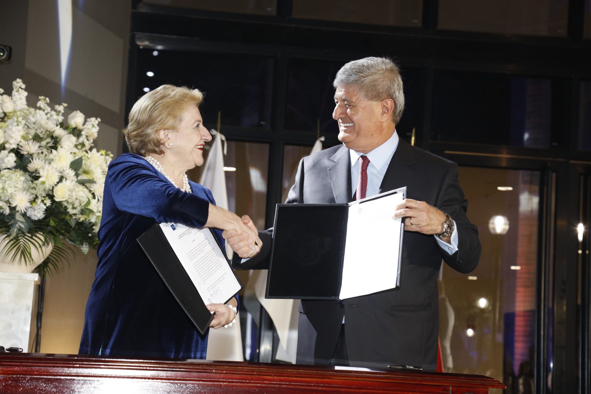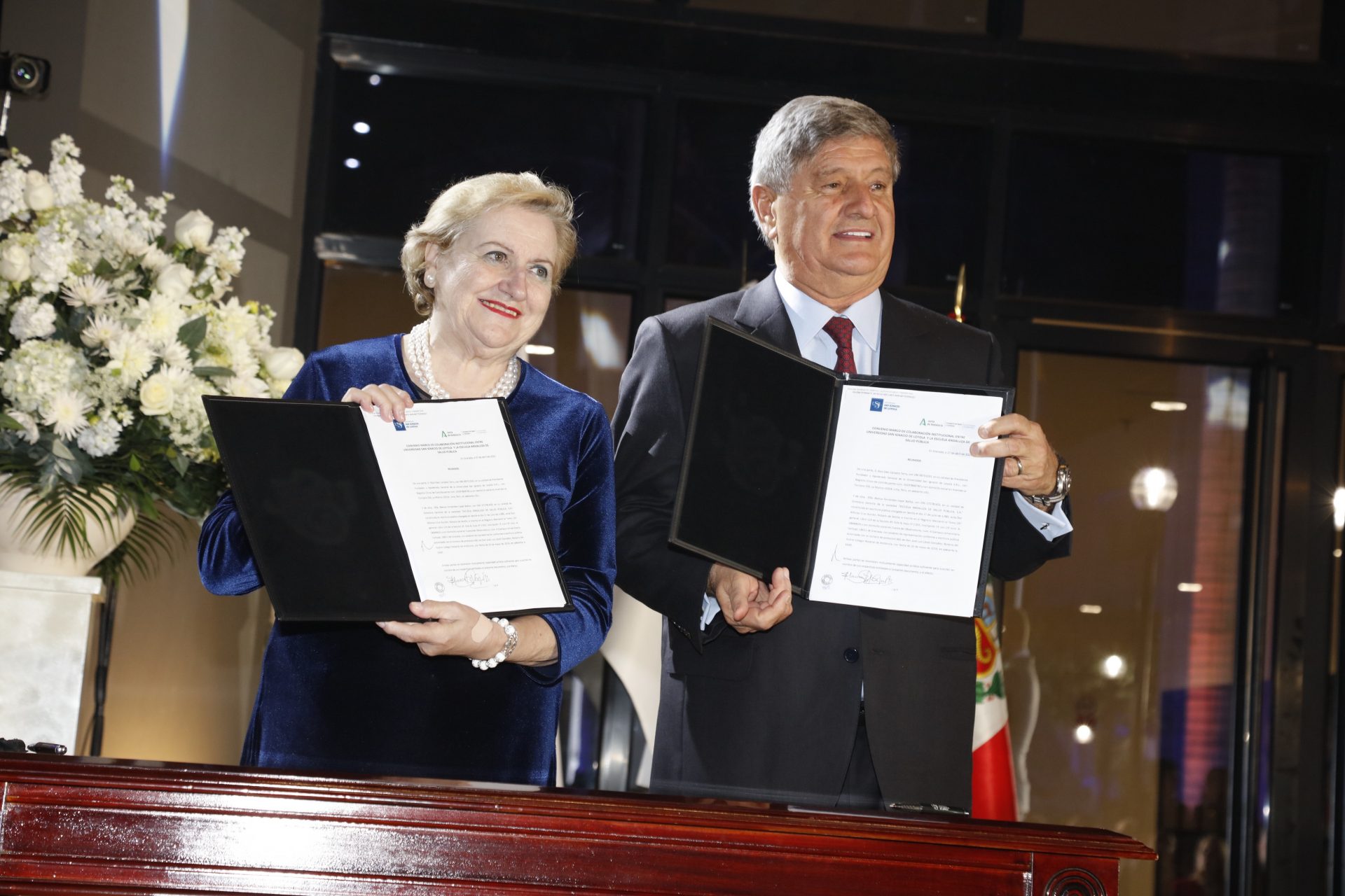 Durante la ceremonia, el fundador presidente de la USIL firmó convenios con los representantes de la Escuela Andaluza de Salud Pública (España), la Saint Camillus International University of Health and Medical Sciences (Roma) y la Asociación de Clínicas Particulares del Perú.