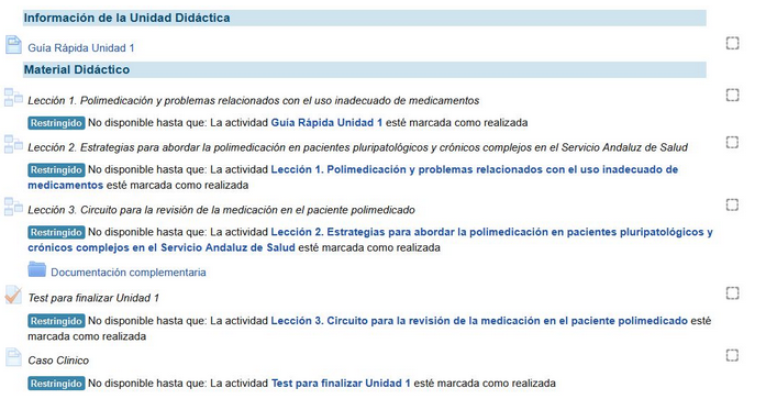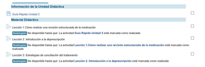 A medida que vayáis cumpliendo estos requisitos, se os van mostrando los contenidos de las siguientes unidades