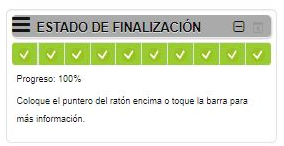 En el margen superior derecho del curso, tenéis un bloque de seguimiento llamado "Estado de finalización", que os va ir mostrando vuestro progreso en las actividades obligatorias del curso.