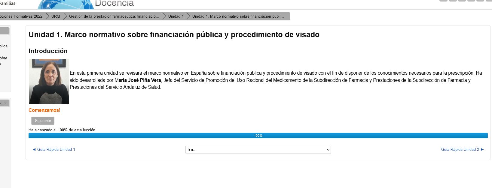 De esta manera volverás al inicio de la lección en la que te indicará que tu progreso es del 100%, pero puedes volver a ver todo su contenido.