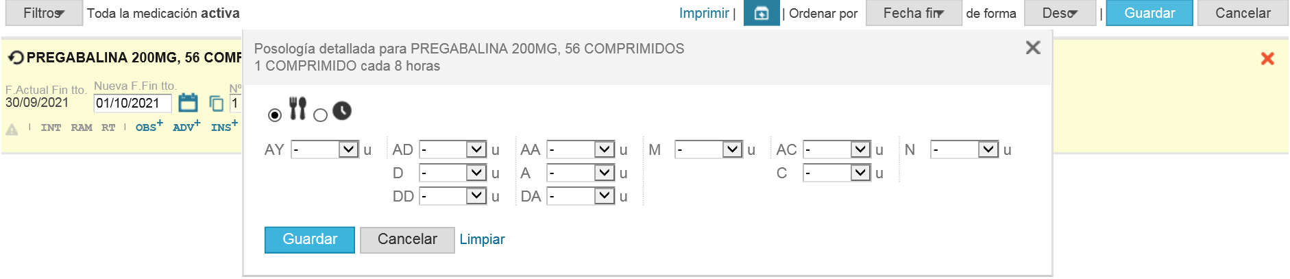Tercer paso: Cambio la posología de la prescrpción en campo "cada"