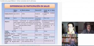Dos personajes de la misma escenografía salieron a escena para representar sus papeles como protagonistas del relato reciente de la promoción de la salud comunitaria en nuestro país, en la primera sesión virtualmente golfa del diploma, este miércoles.